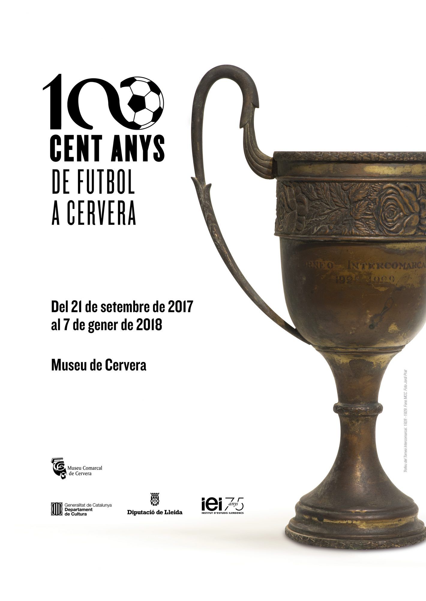 Aquest és el cartell anunciador de l’exposició que es presenta amb el nom de “100 anys de futbol a Cervera”