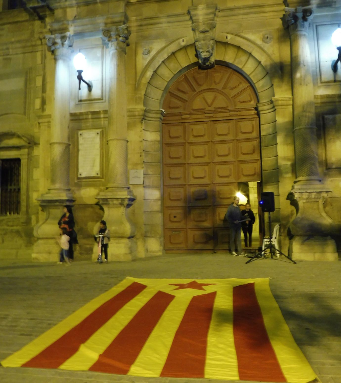 L’estelada gegant passa davant el Mirador Toni Nadal…