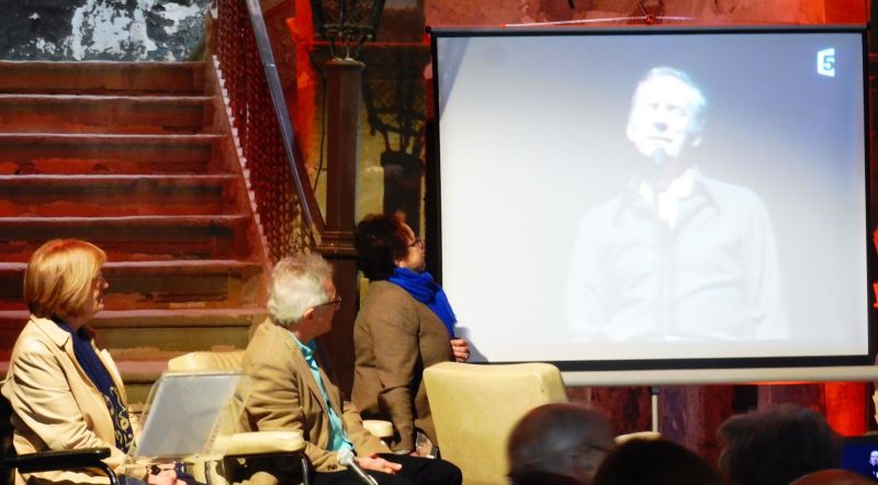 Mentre anava exposant el seu discurs, diferents imatges de la seva vida, s’anaven projectant en gran format.