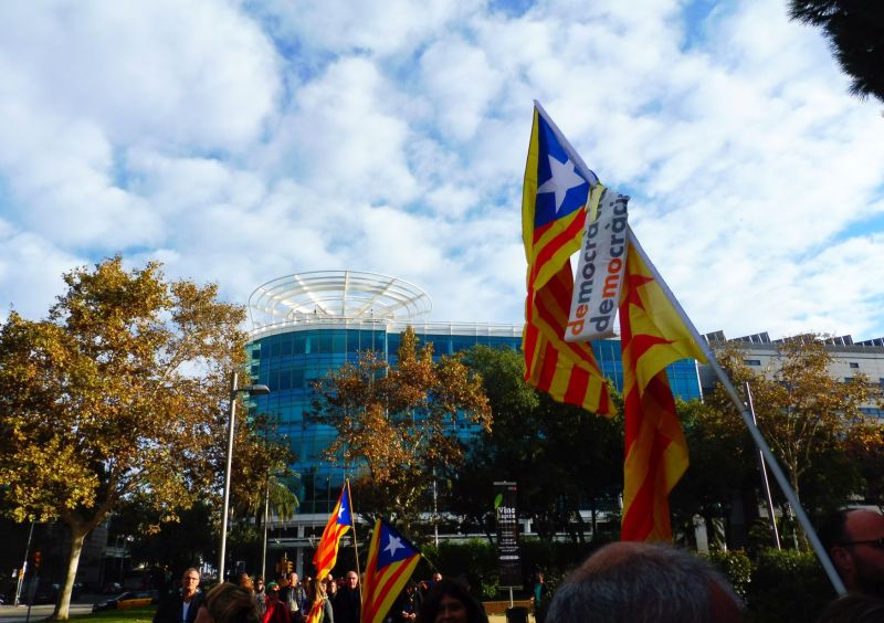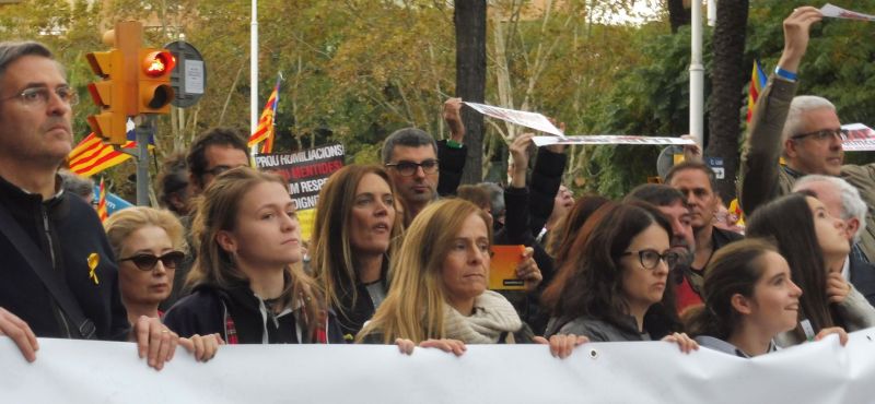 …i en aquesta altra s’hi veu l’esposa de Jordi Sánchez, president de l’Assemblea Nacional de Catalunya. La vèiem amb un posat seriós i molt trist. És la jove que porta ulleres.