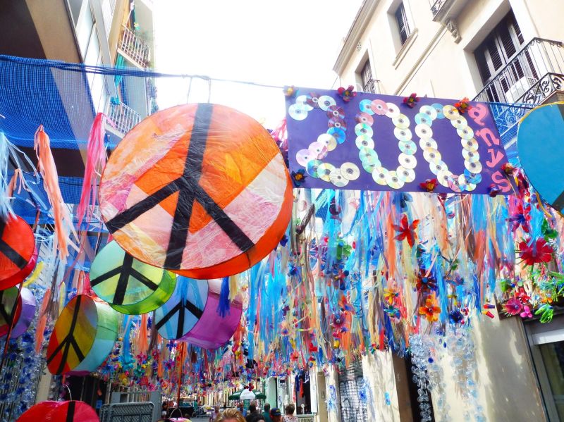 En el cas del carrer Providència els colors desllumbraven. Van crear una ambientació inspirada en els anys seixanta en la que la pau, l’amor i la psicodèlia de de la cultura hippie n’era la protagonista. Gaudiu amb aquestes imatges tan vistoses!!!