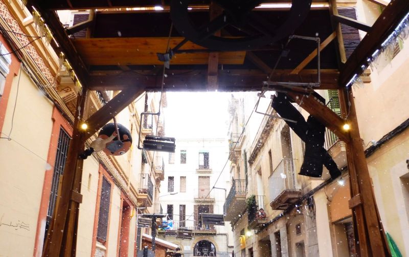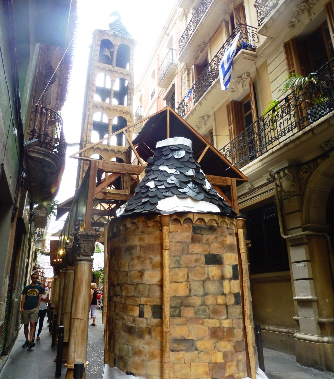 Totes les façanes de la part baixa del carrer estaven folrades amb plafons que imitaven la pedra i les finestres i altres obertures es reconvertien en fantàstics detalls propis d’un poble de muntanya.