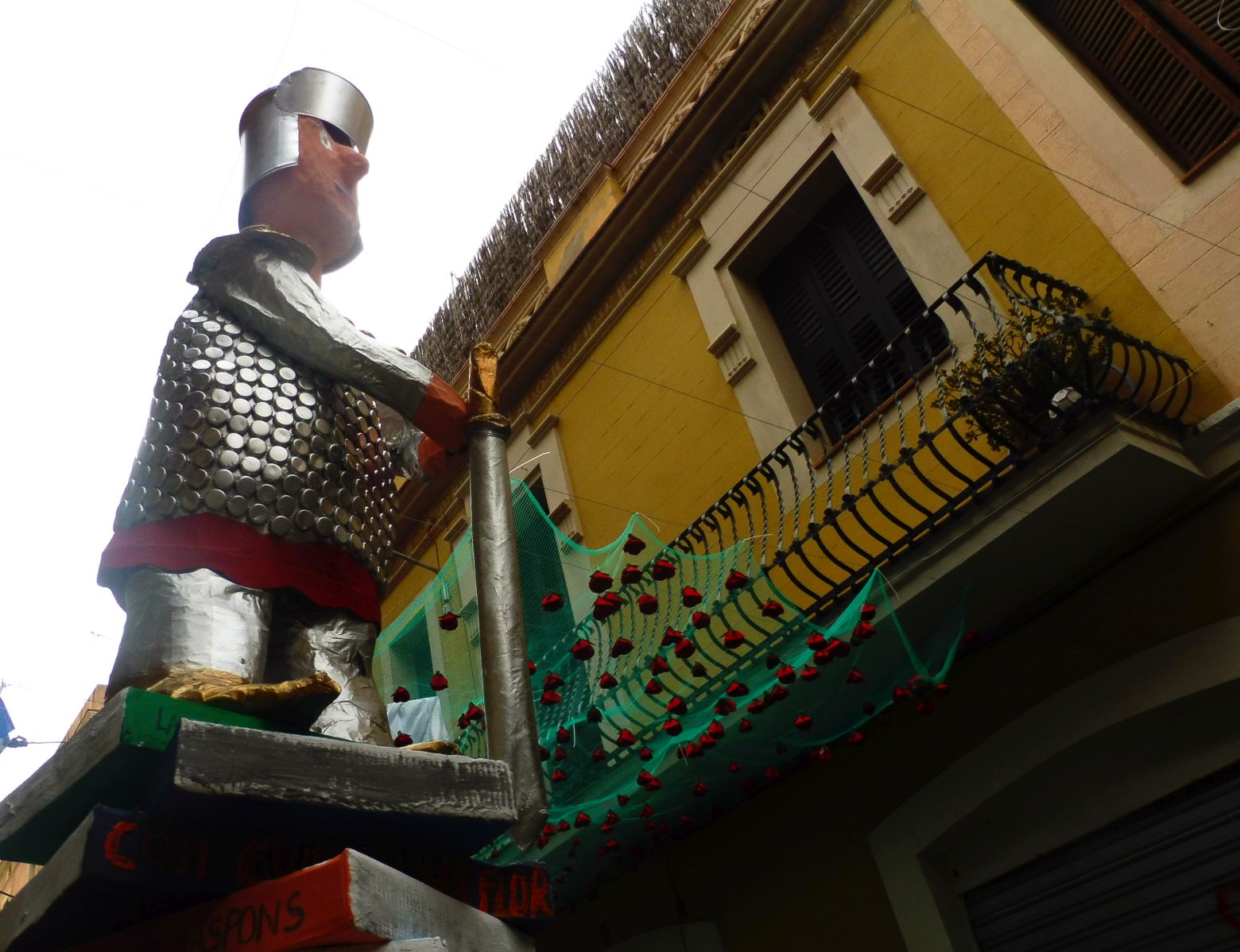 Podeu veure, en primer lloc, unes fotografies de la decoració del carrer Maspons dedicada a la reproducció de la llegenda de Sant Jordi. El cavaller, el drac, les roses i l’intercanvi de llibres en van ser els protagonistes.