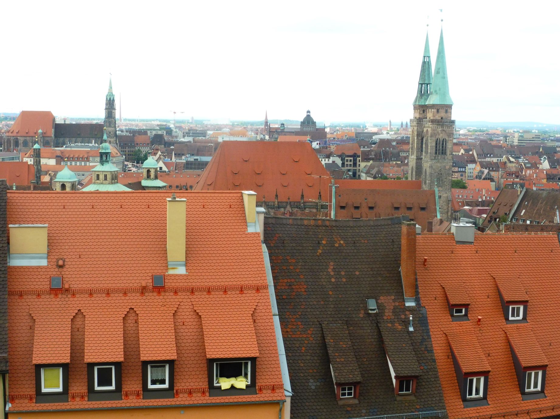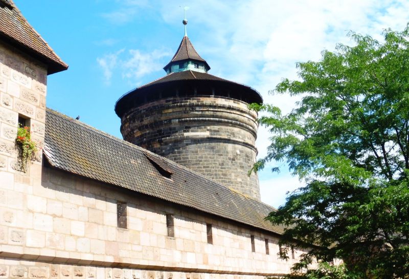 Passem ara a visitar la ciutat entrant per la part elevada, on s’hi toba el castell i des d’on es té una perspectiva de bona part del centre històric. Cal recordar que durant la Segona Guerra Mundial Núremberg va ser destuïda fins el 90 per cent. La reconstrucció fidel de la ciutat es va fer seguint els planells originals. Avui llueïx impecable.