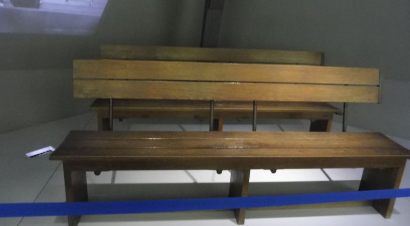 Aquests són els bancs, molt senzills, en que els que es van asseure tots els condemnats durant el Judici.
