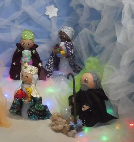 Els Reis. Com podeu veure aquest any sorprén una figura molt especial i gens comú en un pessebre: Sant Magí, que s’afegeix a adorar el Nen.