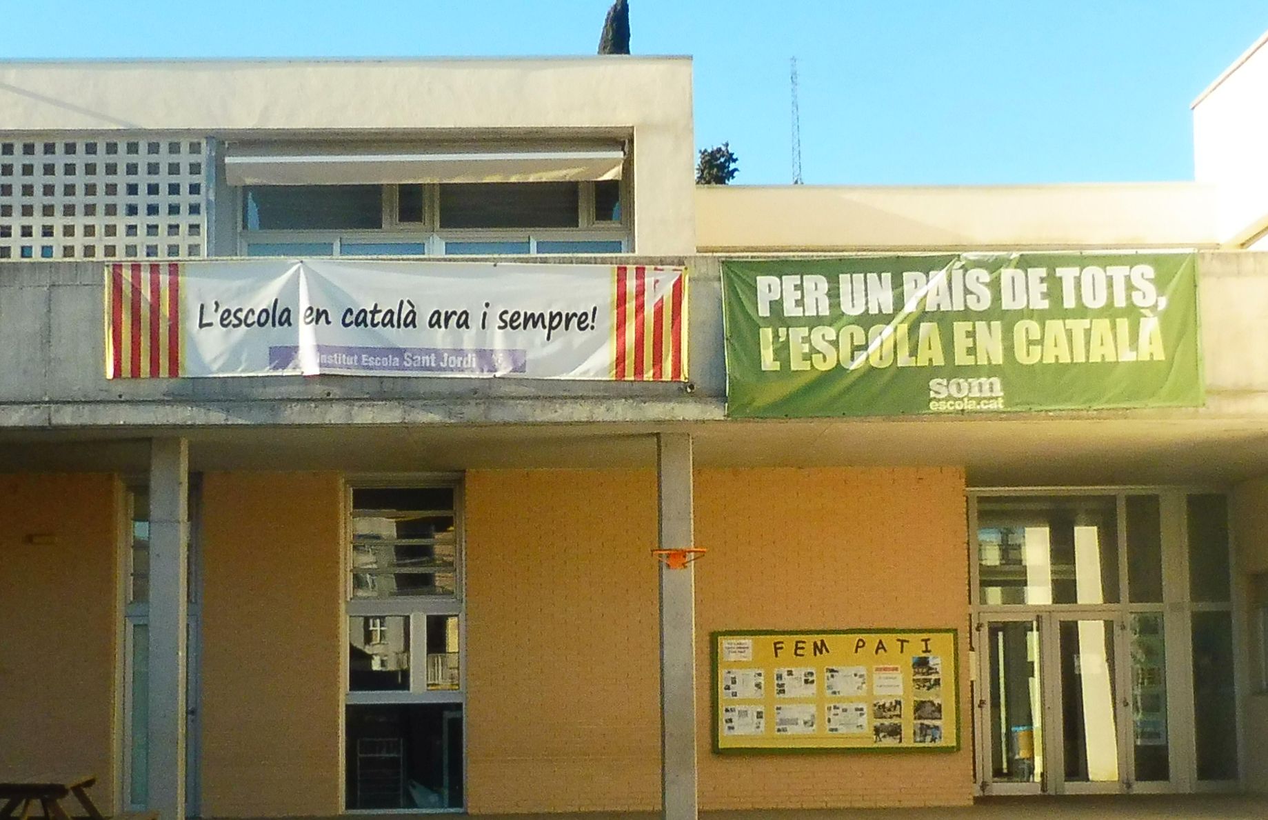 Un poble jove i compromés amb el país. Ja vaig comentar que de groc n’hi havia arreu i, en aquest centre educatiu, la defensa del projecte d’ensenyament queda palès en aquests murals que hi tenen exposats.