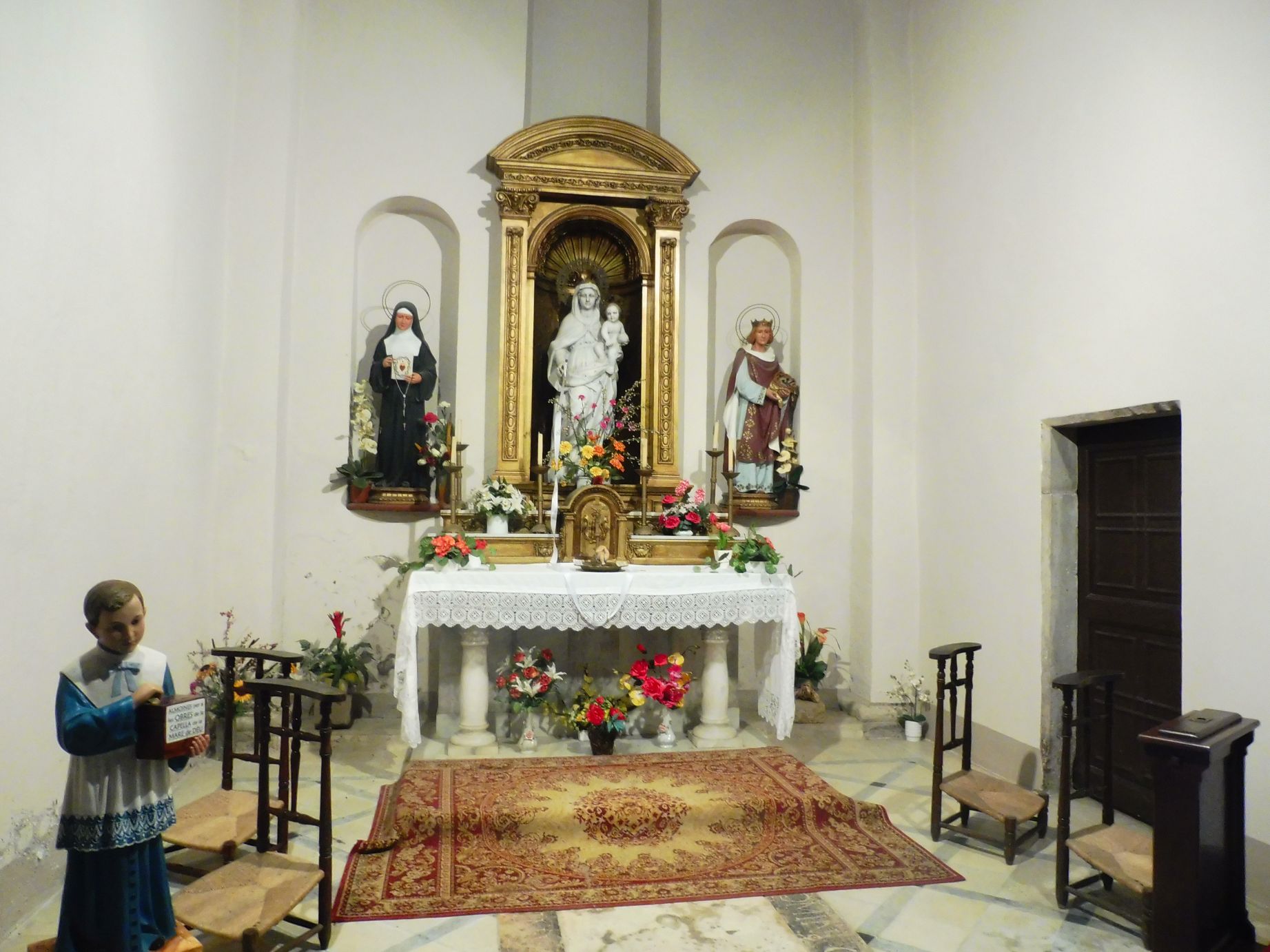 És una verge feta amb alabastre i la capella on és venera no té res a veure amb la resta de l’ermita, totalment de pedra vista.
