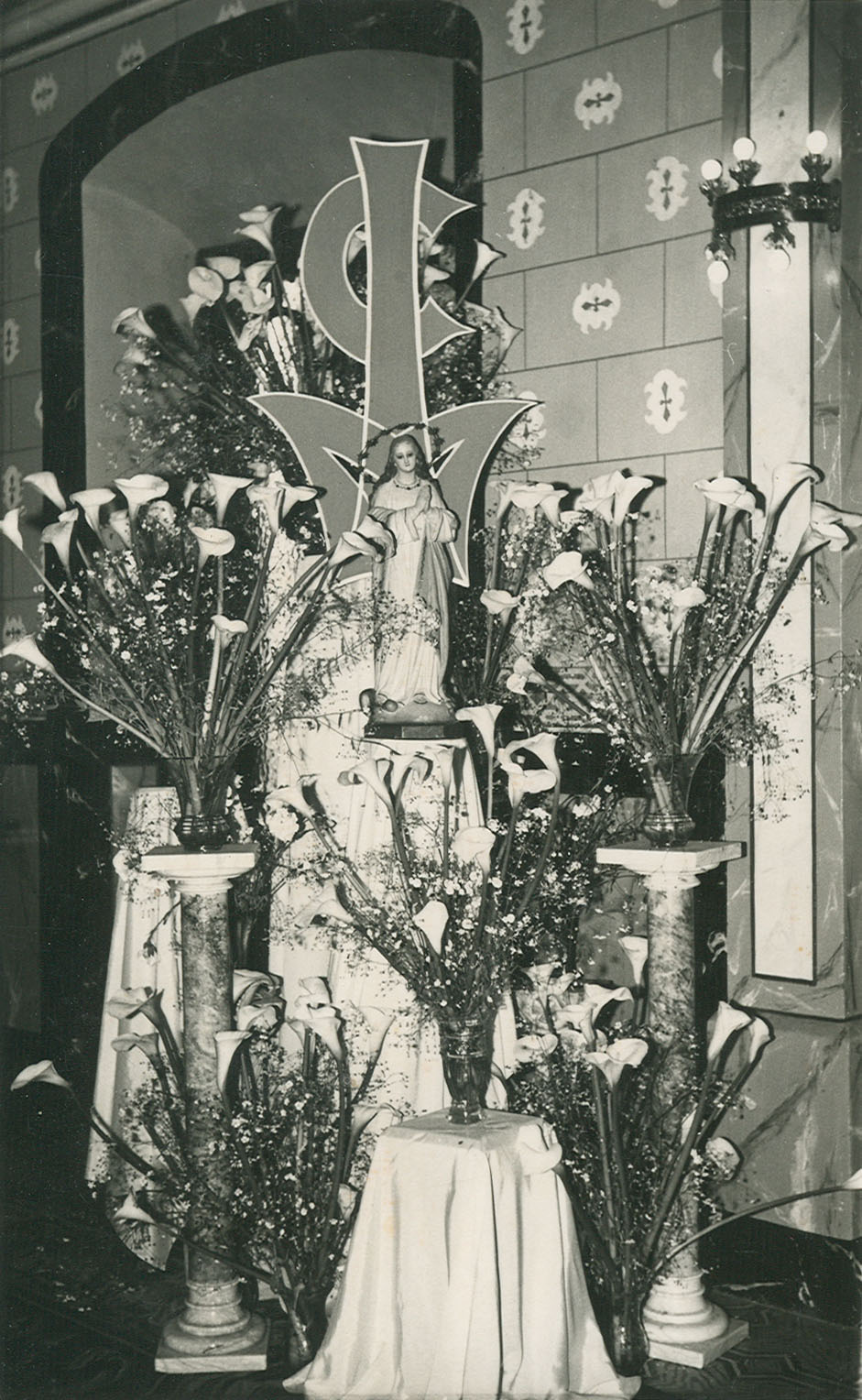 Les imatges que protagonitza la Immaculada Concepció vista en tres moments diferents de les boniques i acurades presentacions que es feien cada any pel mes de Maig, per celebrar el Mes de Maria, es troben al darrera d’aquesta coberta.