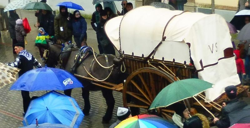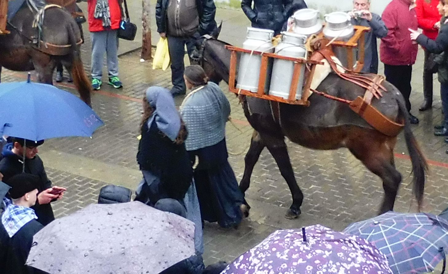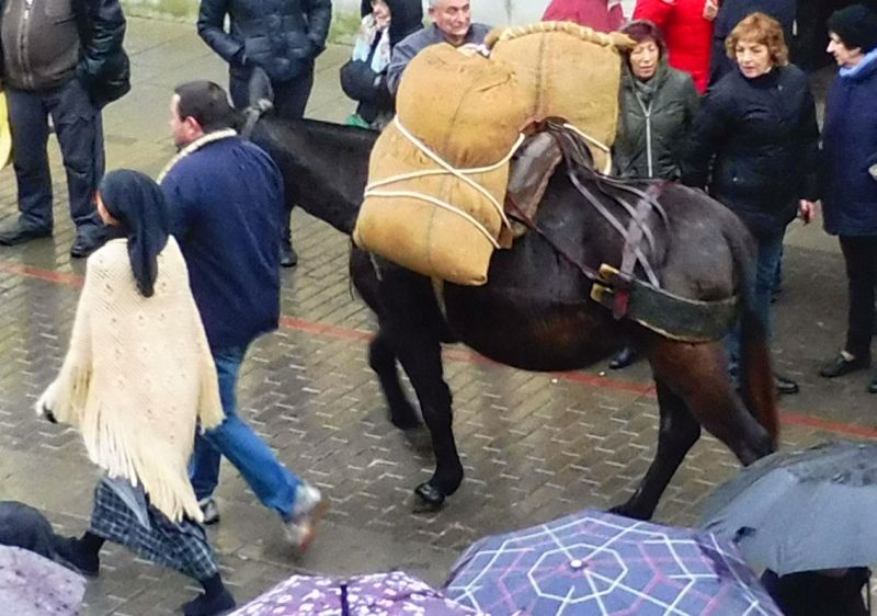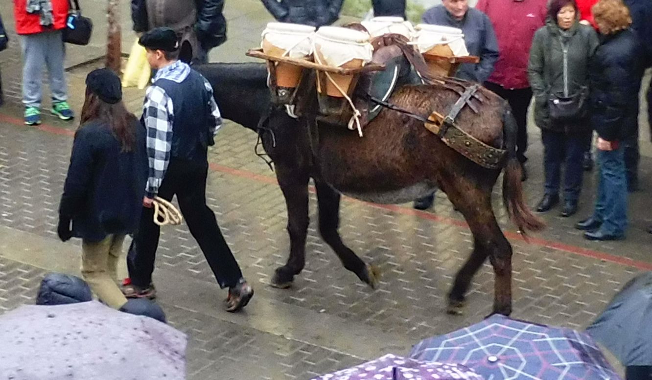 Hi havia un grup de gent vinguda d’Europa que portaven uns vestits molt bonics. Cridava l’atenció el calçat ja que els esclops que duien eren com aquest que hi havia dalt el carro que els acompanyava. Curiosos i poc fàcils a l’hora de caminar!