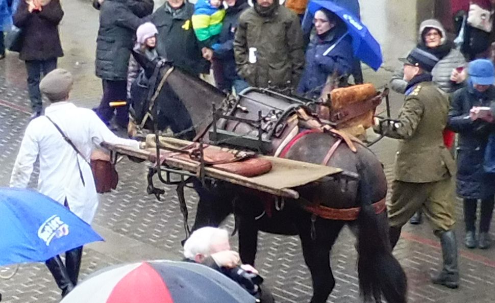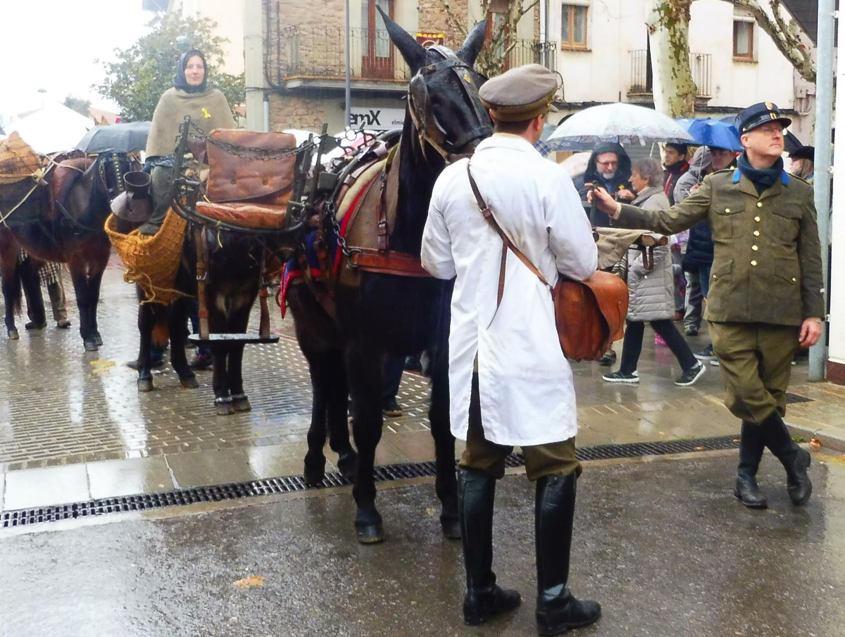 Un jove vestit de sanitari i un altre de militar tenien cura d’aquests elements tan antics i curiosos.