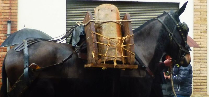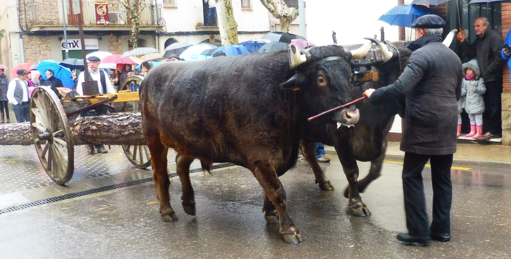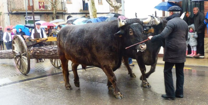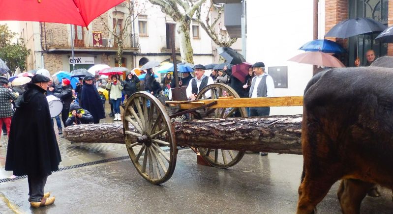 La majoria d’animals de càrrega eren equins però cal dir que, quan es tractava d’arrossegar coses de més pes, els bous eren ben necessaris. Aquest tronc era llarguíssim i estava molt ben posat per tal de transportar-lo en un llarg recorregut.