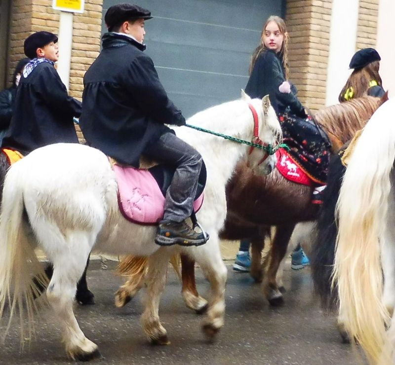 La desfilada la tancava un grup de gent que anava, individualment, damunt un cavall. Els més menuts cavalcaven amb ponis.