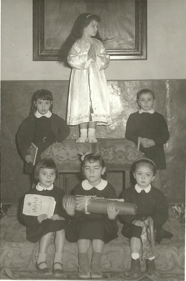 Fila 1: Rosita Segura, Anna M. Tardà (Verge nena) i M. Dolors Ibáñez (de la sabateria Ibáñez del carrer Major).