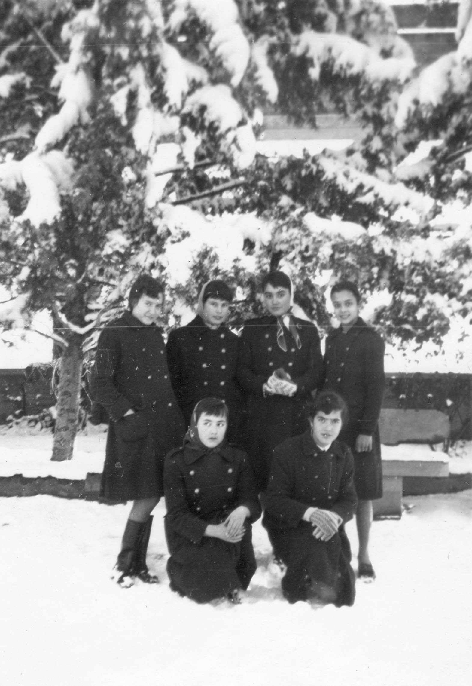 En aquells anys sembla que les nevades que queien eren molt més habituals que ara. Els gorros encara no havien fet acte de presència en joves i grans. Els mocadors lligats al cap ajudaven a no tenir tant fred.