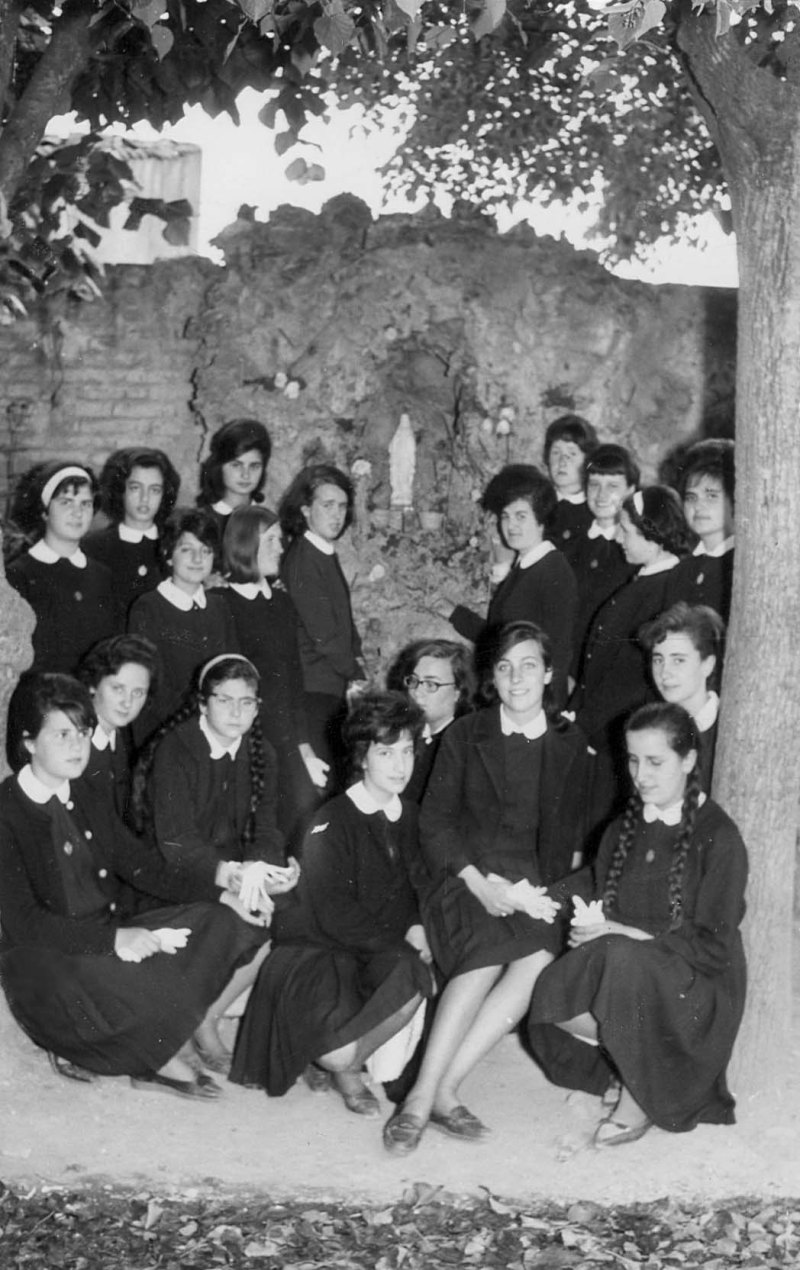 Les alumnes que surten en aquesta fotografia són quasi bé les mateixes que hi ha a l’anterior, en aquest cas, posant davant la gruta.