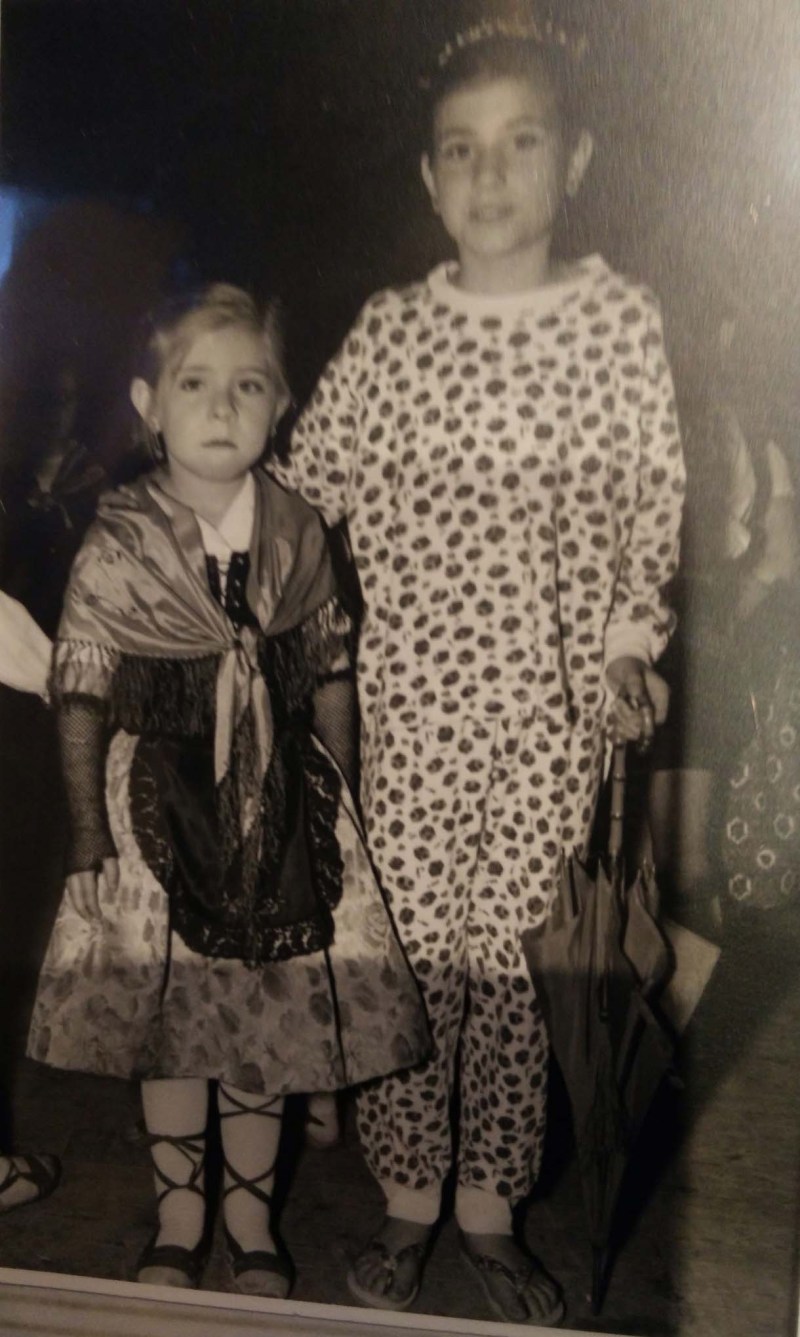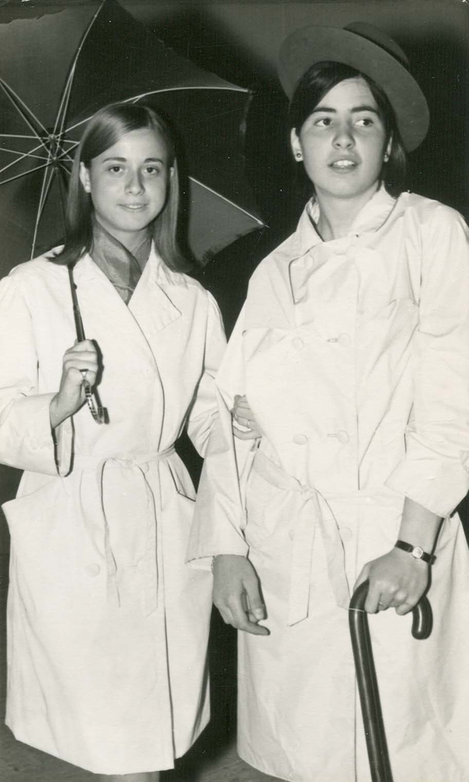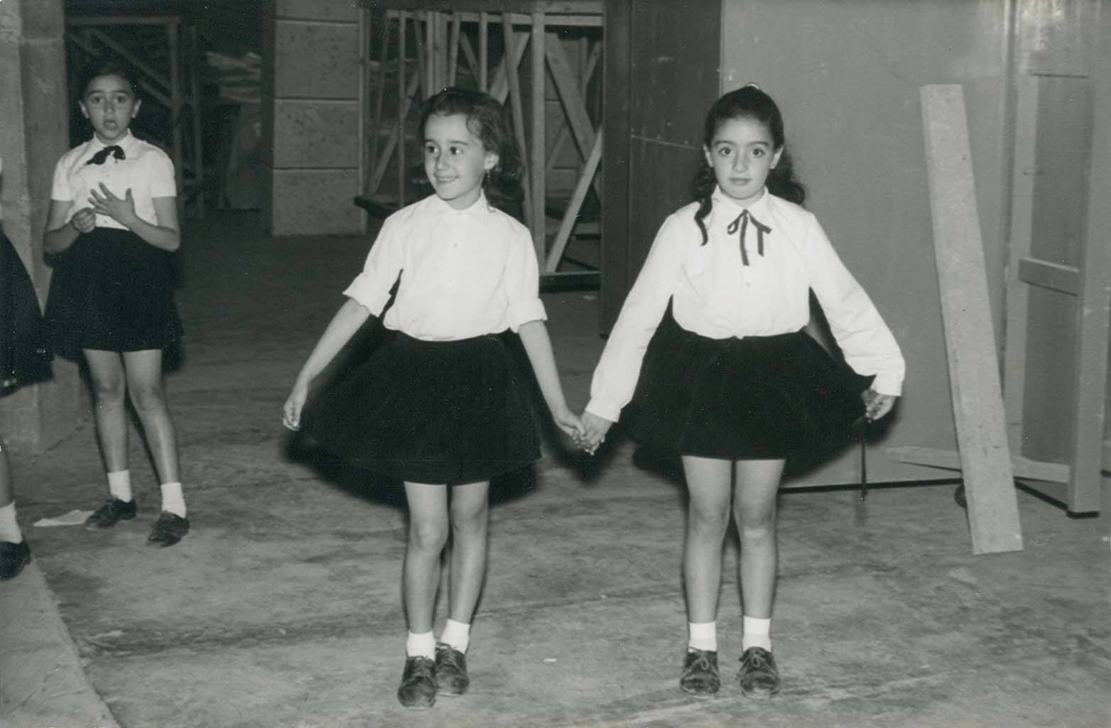 A la dreta: Marta Cuadros (professora de matemàtiques, inicialment al Col·legi Jaume Balmes i, des de fa molts anys, a l’Institut Antoni Torroja) feia de xina. Aquí la vèiem amb la seva germana Blanca que participava en una actuació de dances tradicionals.