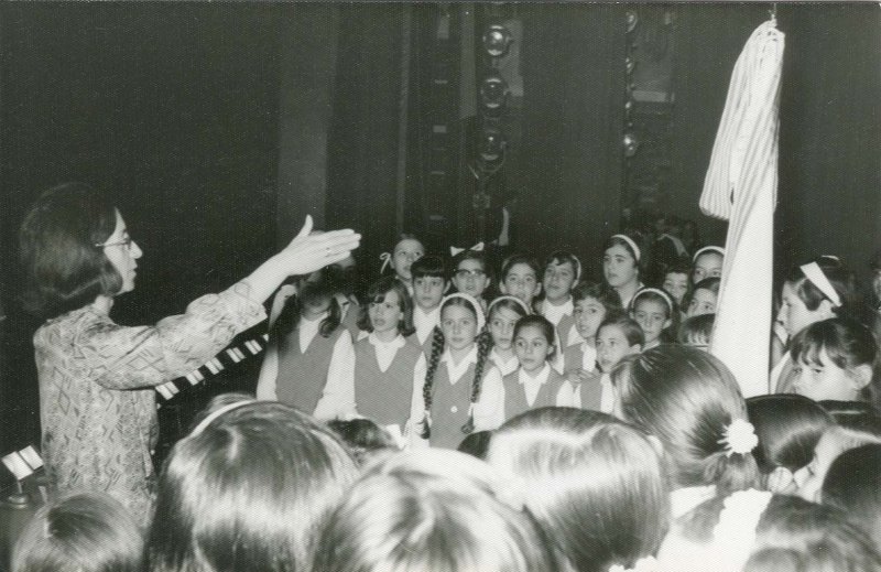 Un tret que la caracteritzava era la seva estimació per la música. Aquí la podem veure dirigint un grup de cantaires.