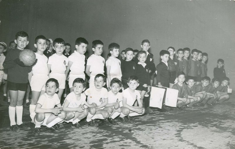 Fila 1: Els joves Francisco “Paquito” Burgos, Josep M. Orobitg i Josep M. Riera. Aquests dos darrers formaven part del conjunt “els Cervix” que tant èxit va tenir en el seu temps.