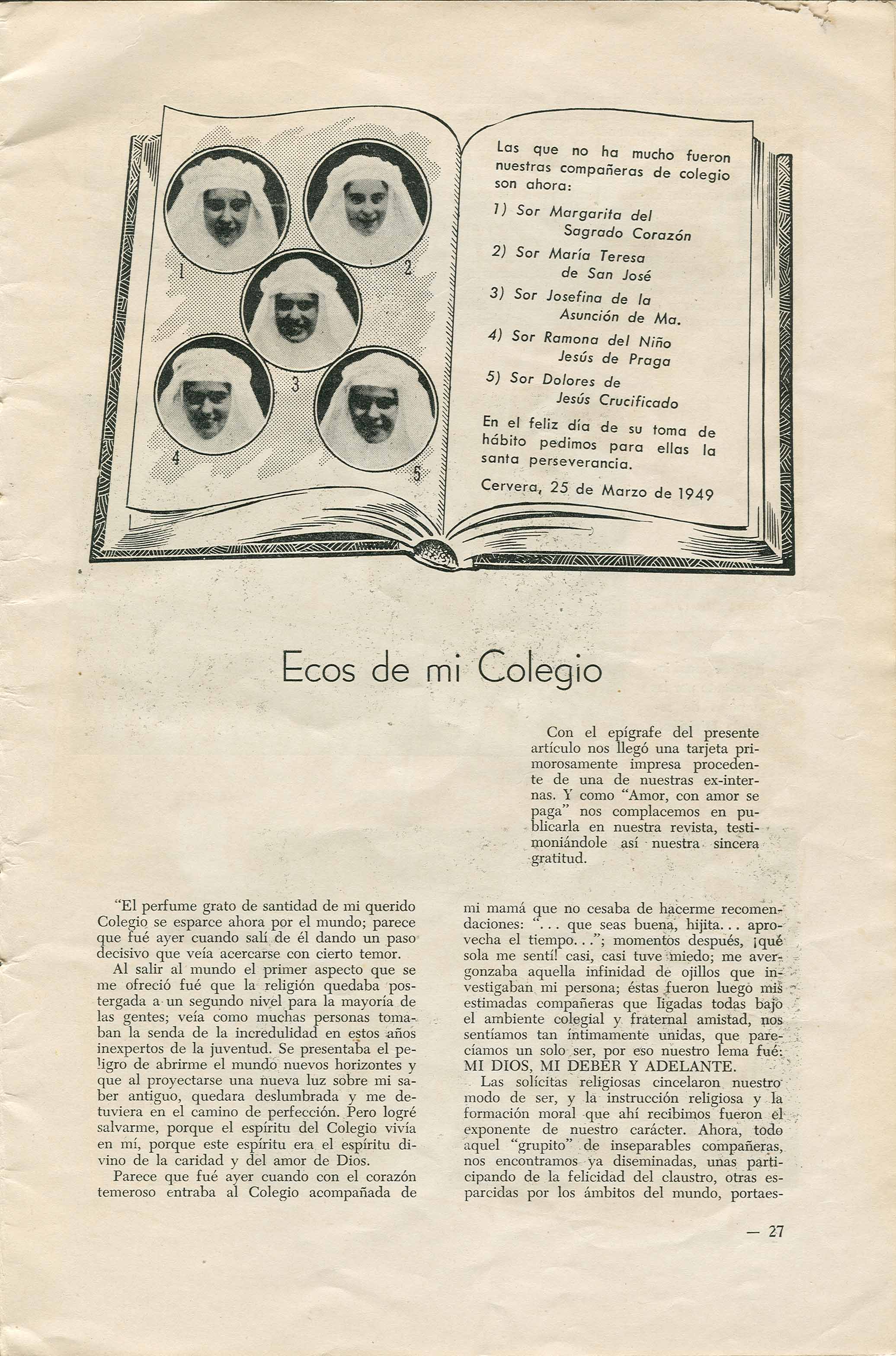 Aquesta primera imatge publicada a la revista també l’heu pogut veure al blog. Aquí sabem que les alumnes eren de Segunda División. El text està signat per una ex-interna.