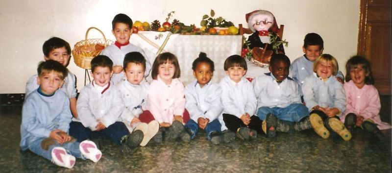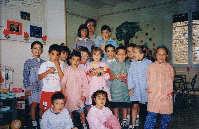 Aquí podem veure, davant del primer nen, el germà de Marc, Àlex Márquez Alentà. La mestra, que es deia Montse i, al seu costat, Sara Vila Gomà a qui cal donar les gràcies perquè ella també ens ha facilitat moltes de les fotografies d’aquests darrers temps.