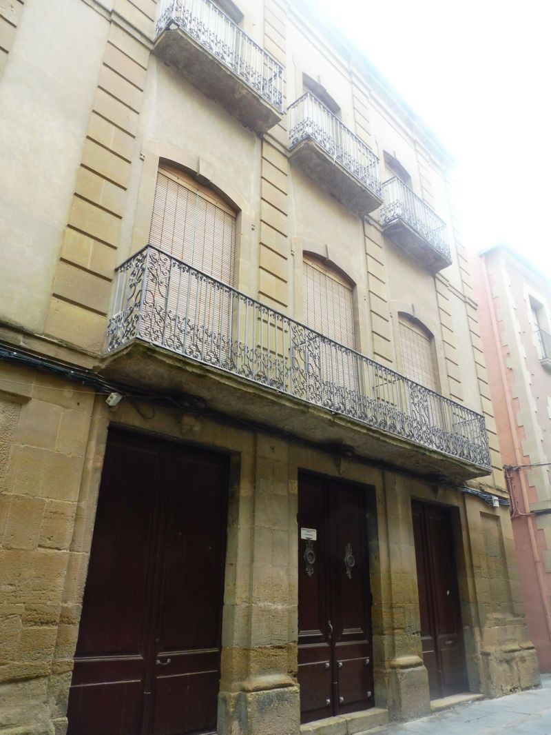 Aquesta façana lateral correspon al tram que va des del carrer Major al passeig Portalet. Com podeu veure es tracta d’un edifici imponent amb moltes obertures emmarcades amb pedra.