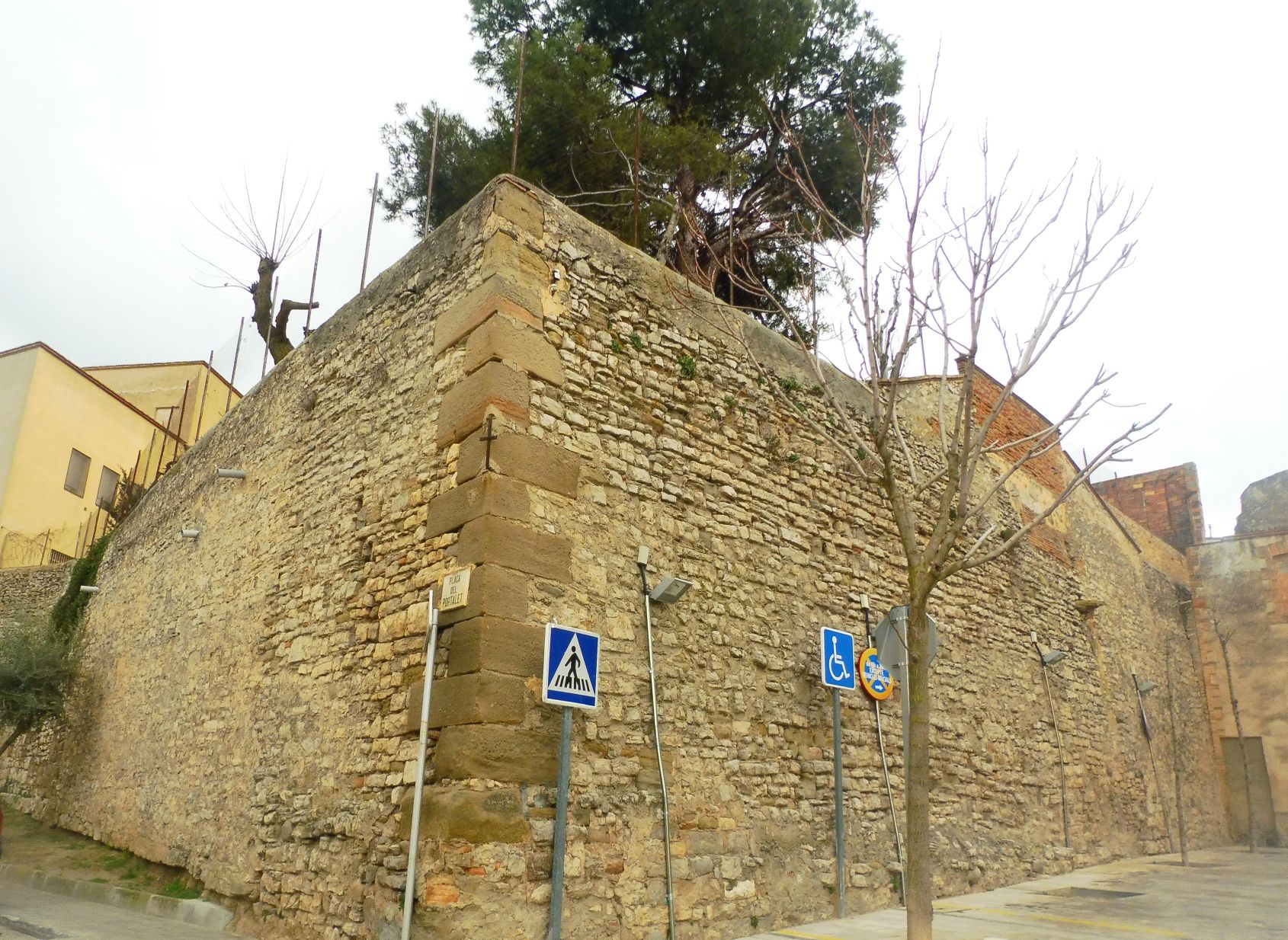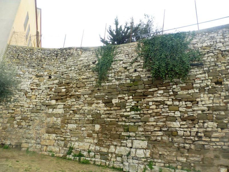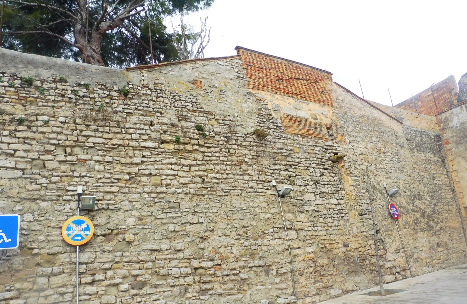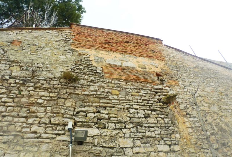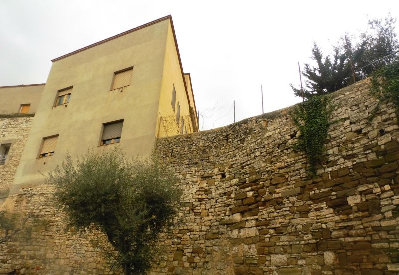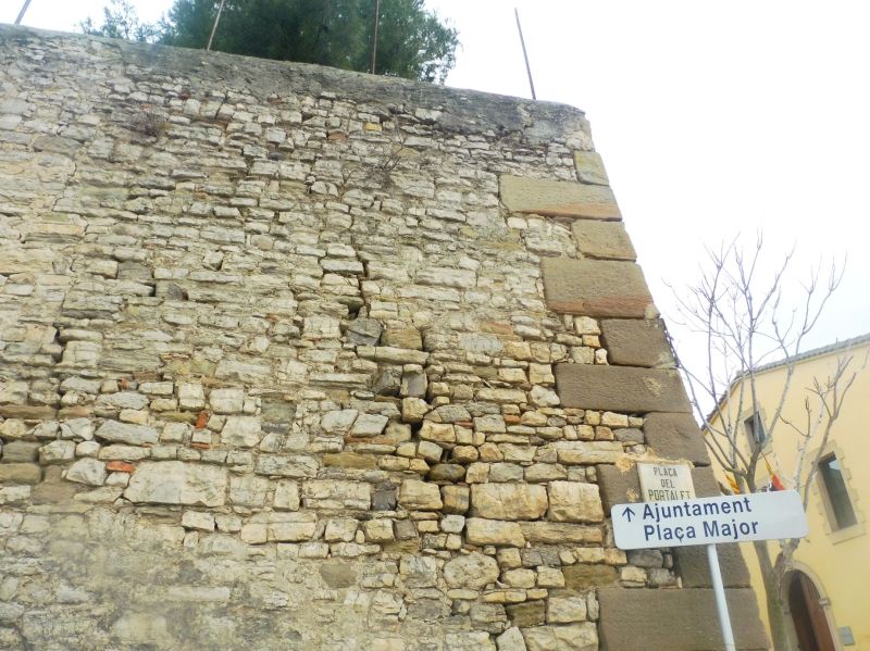La muralla que aguanta el pati. Quasi tota l’alçada està, per la banda de dins, plena de terra, que correspon a la zona del pati.