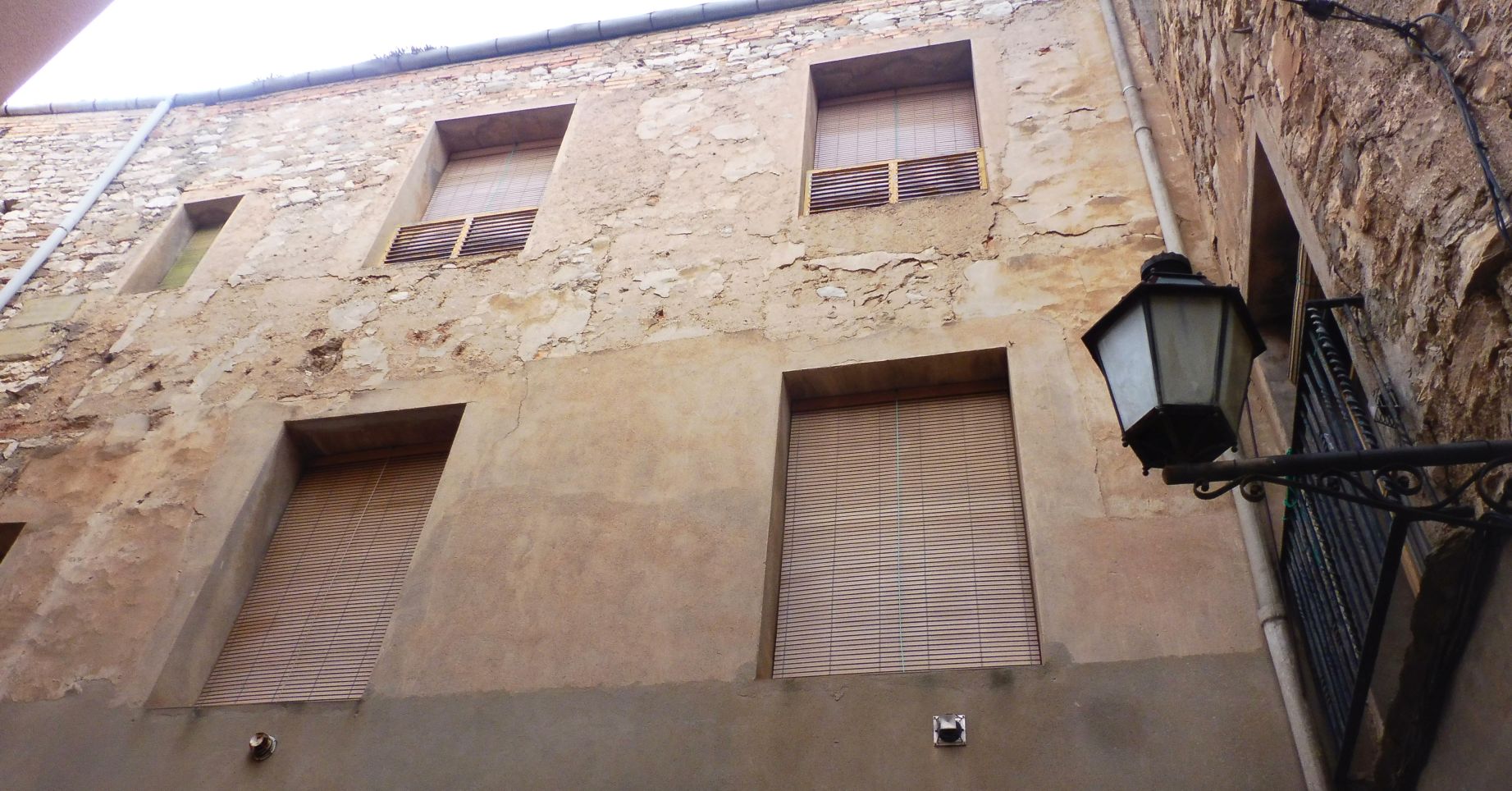 Façana que dóna al carrer Major. Cal recordar que en aquest balcó tan gran hi havia la classe dels nens i, atés que era una sala molt gran, s’hi feien representacions especialment per Nadal, on tothom hi anava a veure els Pastorets. En un altre post la podreu veure per dins ja que ara fa molt goig i llueix unes pintures restaurades que es van descobrir posteriorment.