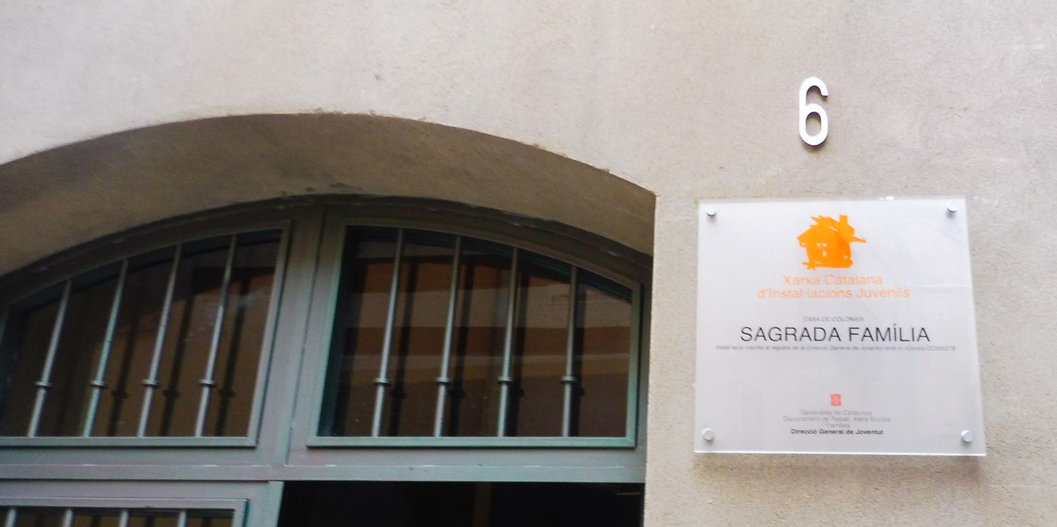 Porta actual d’entrada. Com podeu veure en el rètol aquest centre ara està catalogat com a Xarxa Catalana d’instal·lacions Juvenils. Casa de Colònies.