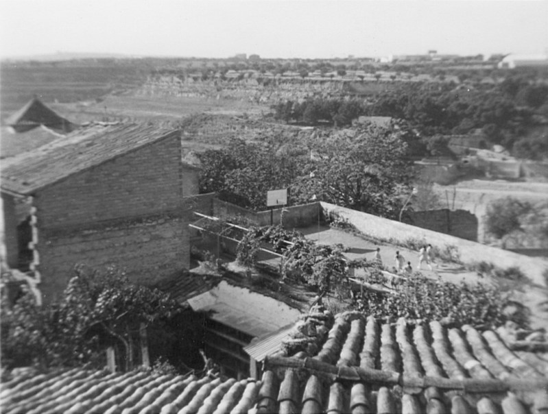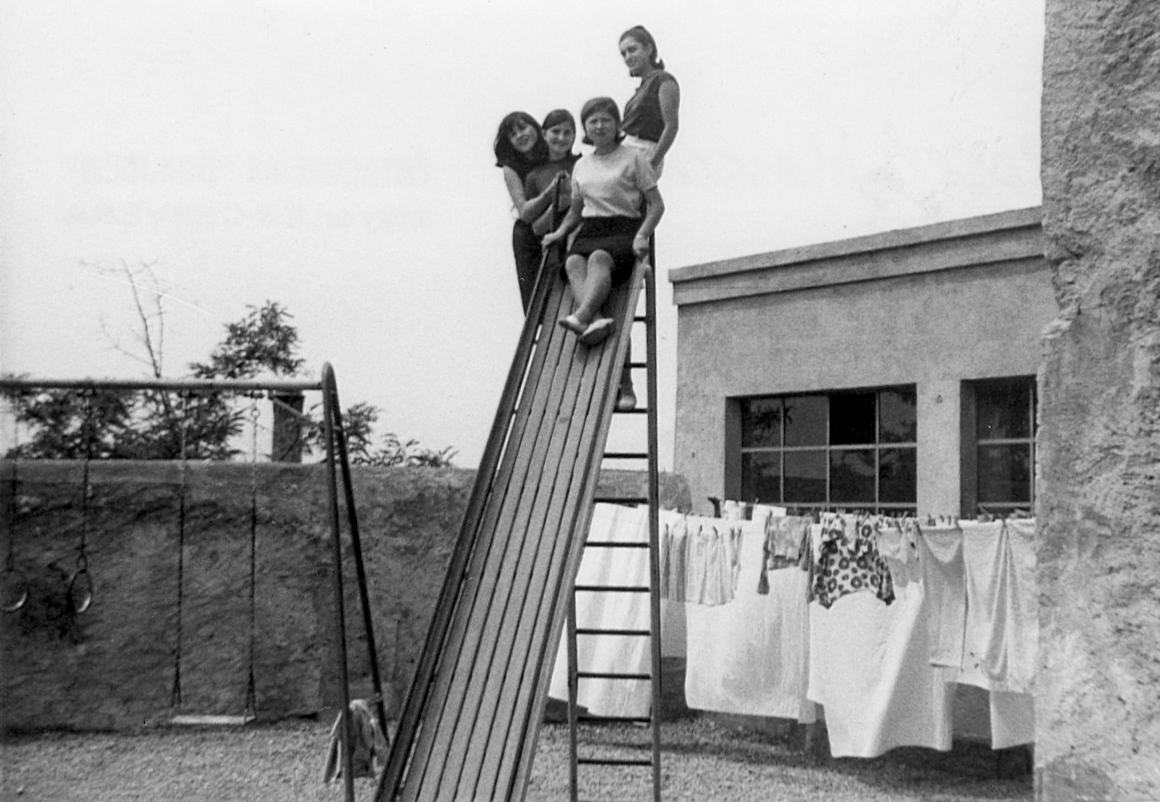 Al darrera d’aquesta paret i, per tant, sota la terrssa s’hi troba la cuina. La manera com està disposada ara és ben diferent d’abans. Podeu veure com aleshores no hi havia els jocs pels més menuts i hi quedava un bon espai per fer-hi fotografies de grup.