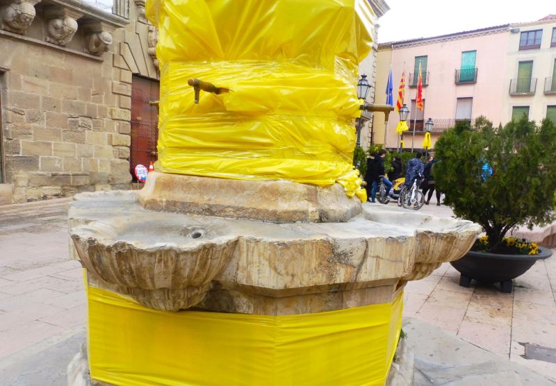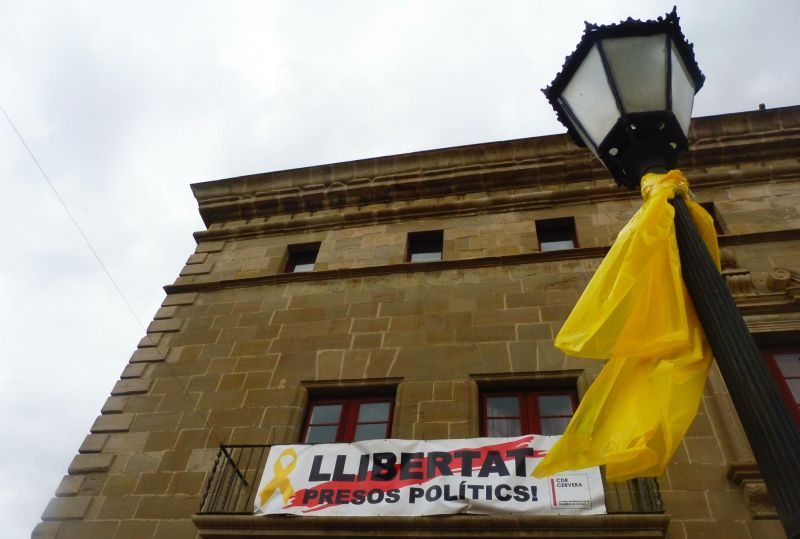 A Cervera la gent propera a l‘Assemblea Nacional, cada dilluns, es reuniex per recordar els homes injustament empresonats i per anar mantenint el groc ben visible en llocs emblemàtics.