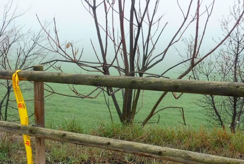 Els arbres florits queden desdibuixats per aquesta boira matinera.