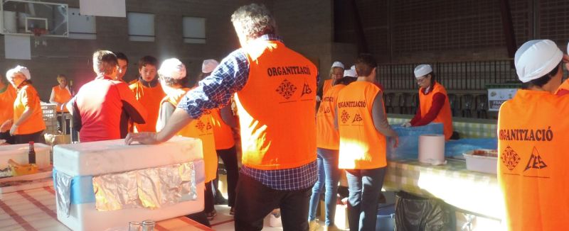 Les voluntàries i voluntaris esperen, després d’haver preparat el menjar, poder atendre les 2000 persones que passaran per aquest punt d’avituallament.