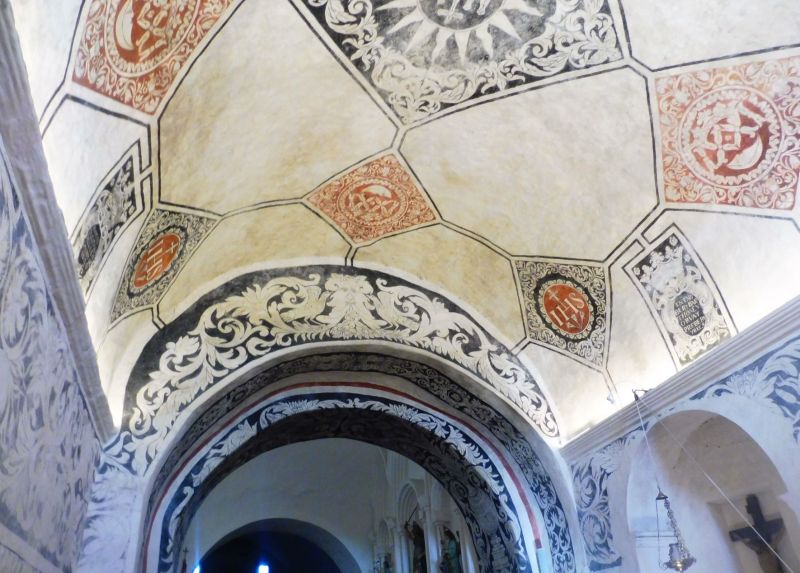 Aquesta esglèsia, a diferència de les altres, té una capella decorada amb unes pintures que sorprenen per la bellesa de la seva simplicitat i la combinació encertada dels seus colors.
