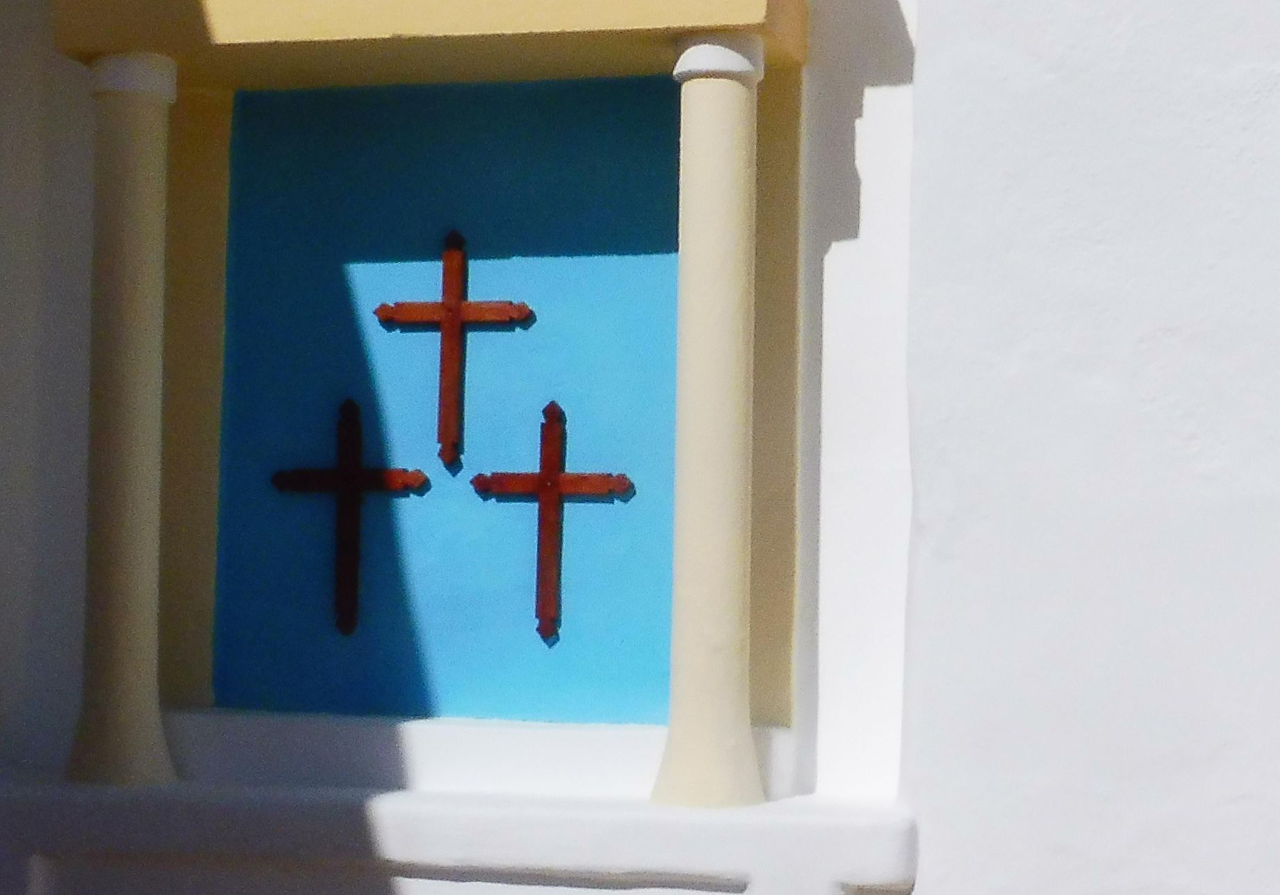 Ben a prop ens trobem amb el poble més important del nord: Sant Joan de Labritja. L’arquitectura de l’edificació més important, l’església, segueix sent senzilla, elegant i desllumbrant en la seva blancor. En aquesta primera imatge podeu veure el cementiri.