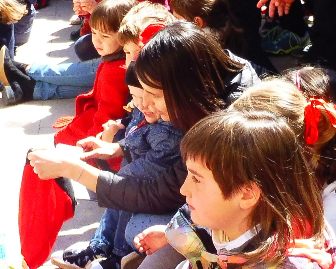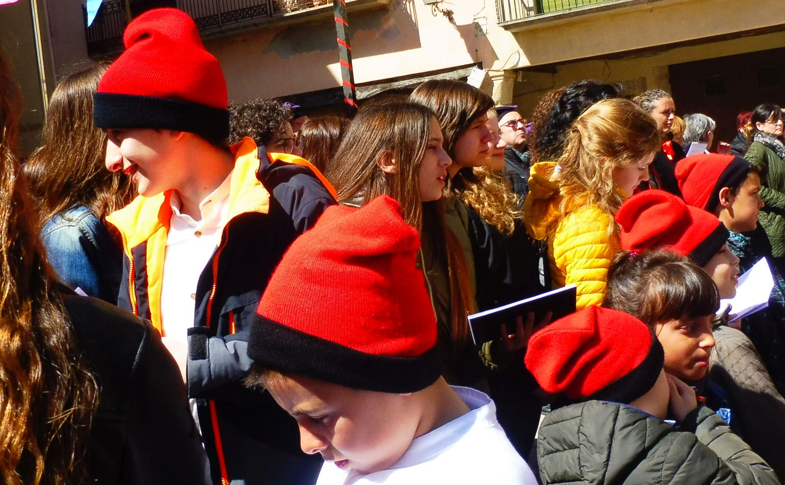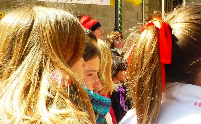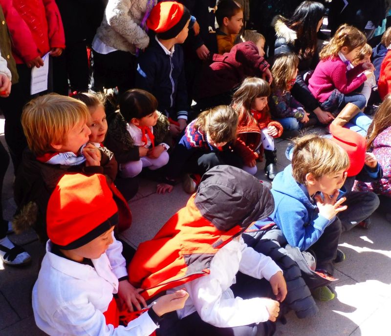 Les nenes llaços vermells i, algunes de més grans s’hi afegeixen el llaç lila.