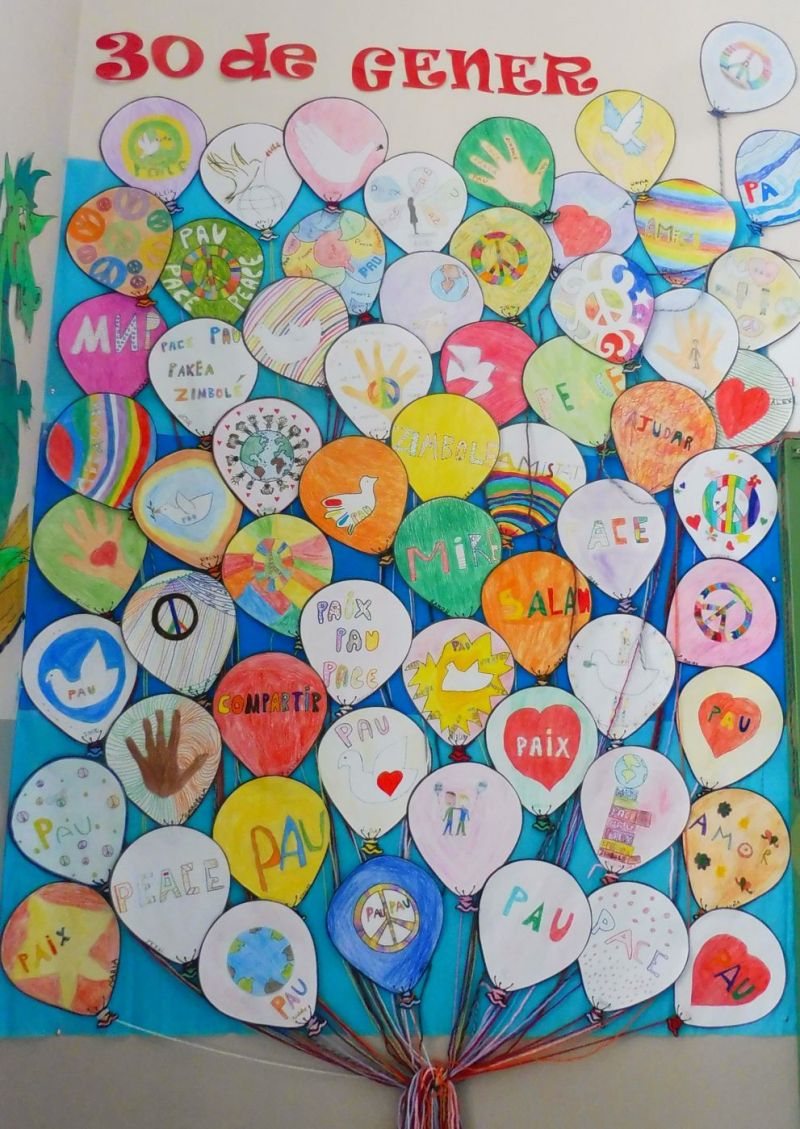 Tothom que va visitar el centre en la Jornada de portes obertes van poder veure com l’entrada els hi donava la benvinguda amb banderoles de coloraines. És el record d’un agraïment a la persona que ha tingut cura de la consergeria i que, en acabar la sustitució , se l’hi ha fet un sentit comiat.