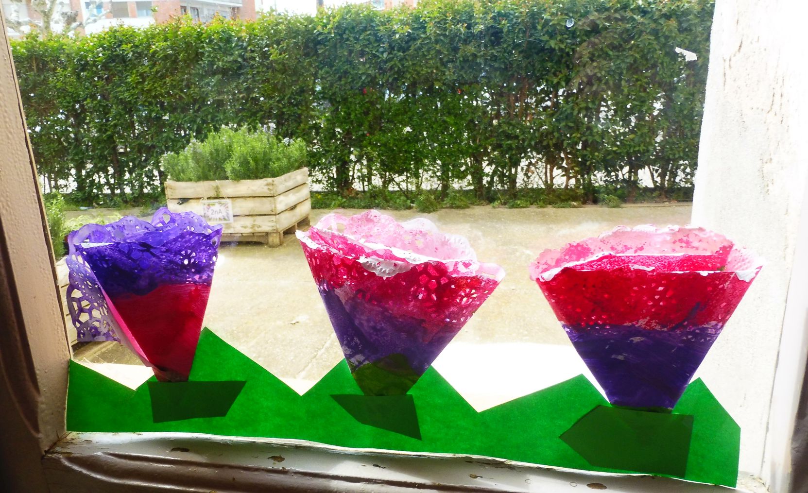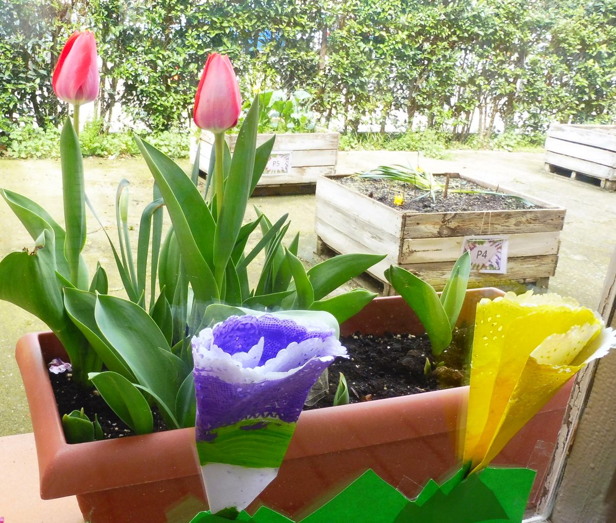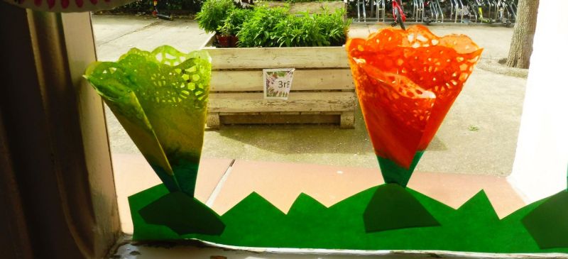 Detall de dues flors. Com heu pogut veure el projecte de treballar amb materials propers i de poc cost ha aconseguit el seu objectiu i, una vegada més, hem pogut veure com la fama d’aquest centre en tenir-lo visualment atractiu segueix inalterable.
