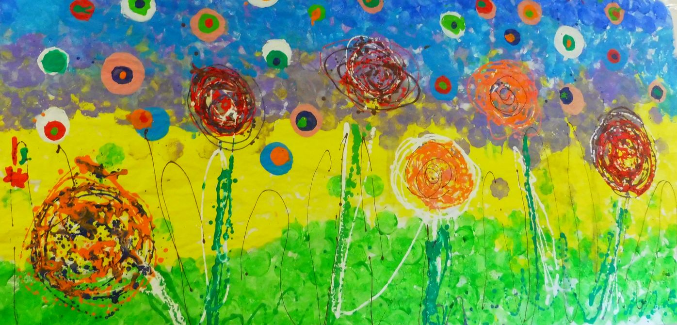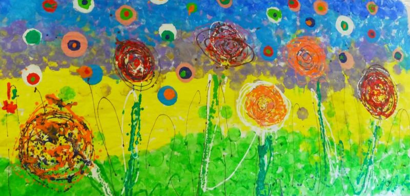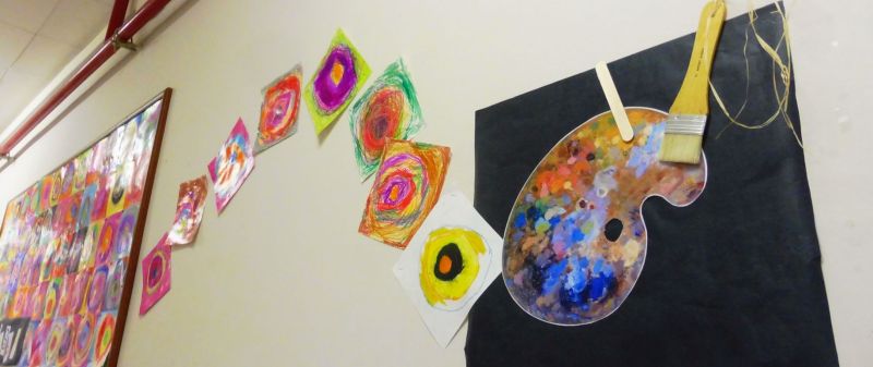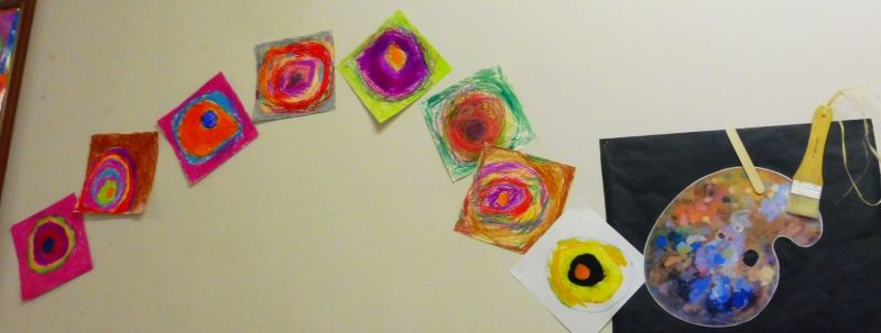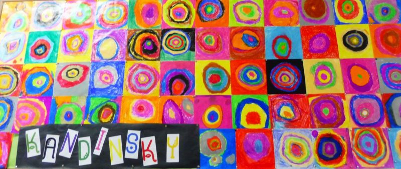 Fàntastica aquesta composició feta amb la suma de treballs dels nens i les nenes que han estudiat el color, tan vistós i intens, tot i coneixent la figura de Kandinsky.