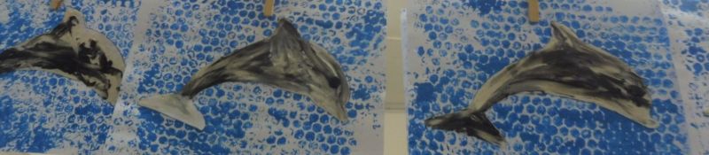 Així com també la manera que han dibuixat aquests dofins els nens i nenes de la classe que porta per nom aquest simpàtic animal marí.