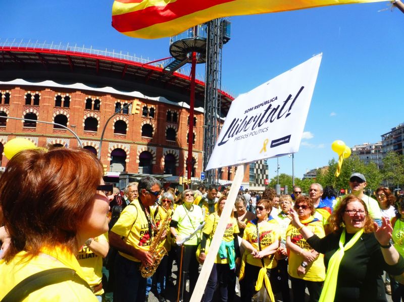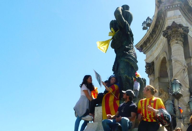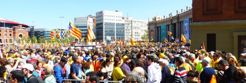 Des de l’avinguda Maria Cristina va resultar del tot impossible intentar travessar la muralla humana que ocupava tota la plaça, per tant voler arribar fins l’avinguda Paral·lel per captar el moment dels parlaments que es van localitzar davant les Tres xemeneies, va resultar del tot impossible. El reportatge d’aquesta jornada acaba doncs aquí. Cal fer esment de les intervencions que hi va haver: la de Txell Bonet, companya de Jordi Cuixart, i la d’Oriol Sánchez, fill de l’expresident de l’ANC, Jordi Sánchez.