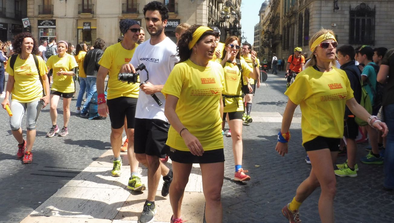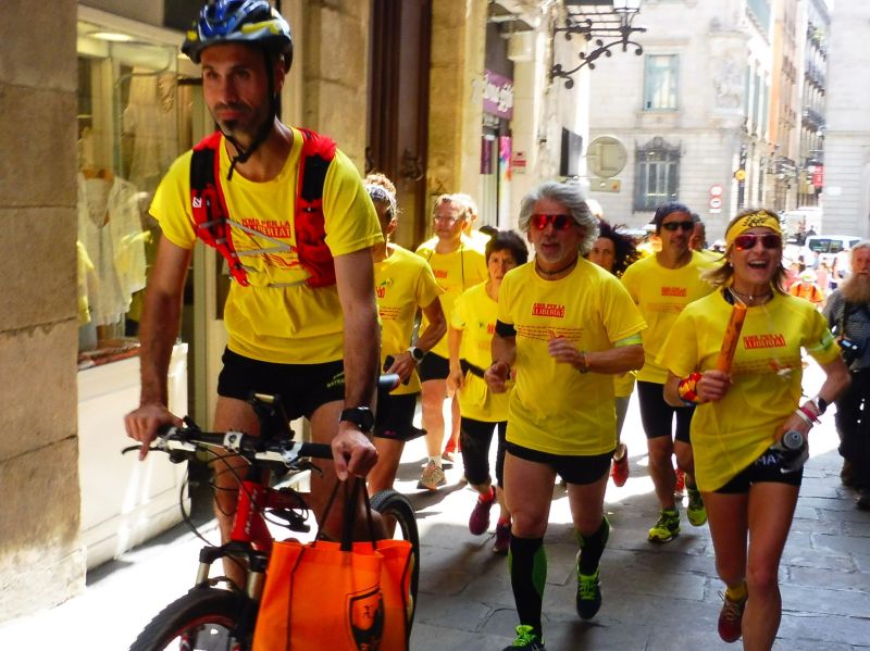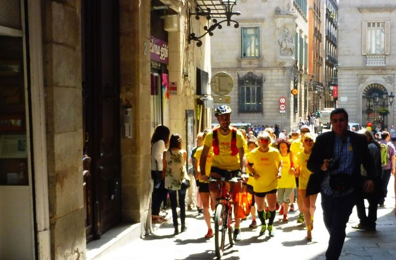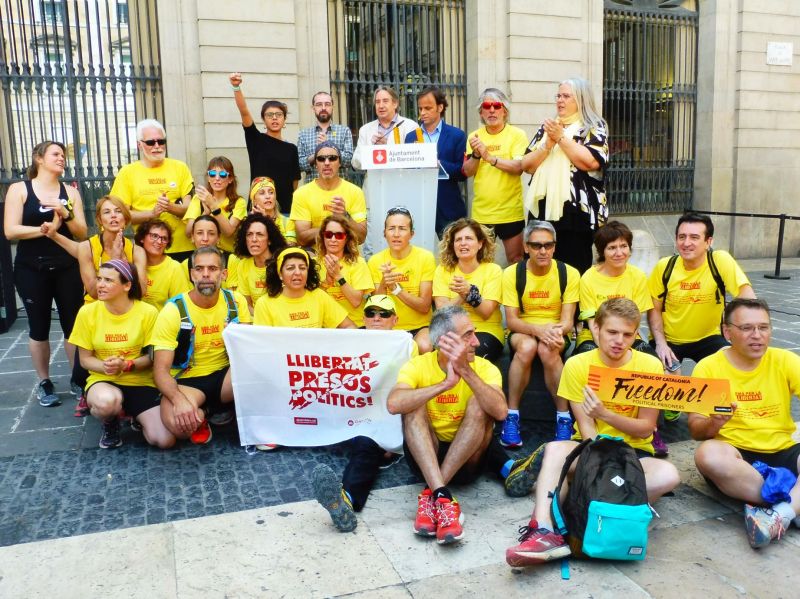 Ahir vam quedar en el moment en que s’inicia KMS per la Llibertat davant del Parlament de Catalunya. El grup que corrien aquest primer tram van anar fins a la plaça Sant Jaume on alguns Regidors de l’Ajuntament de Barcelona els van rebre.