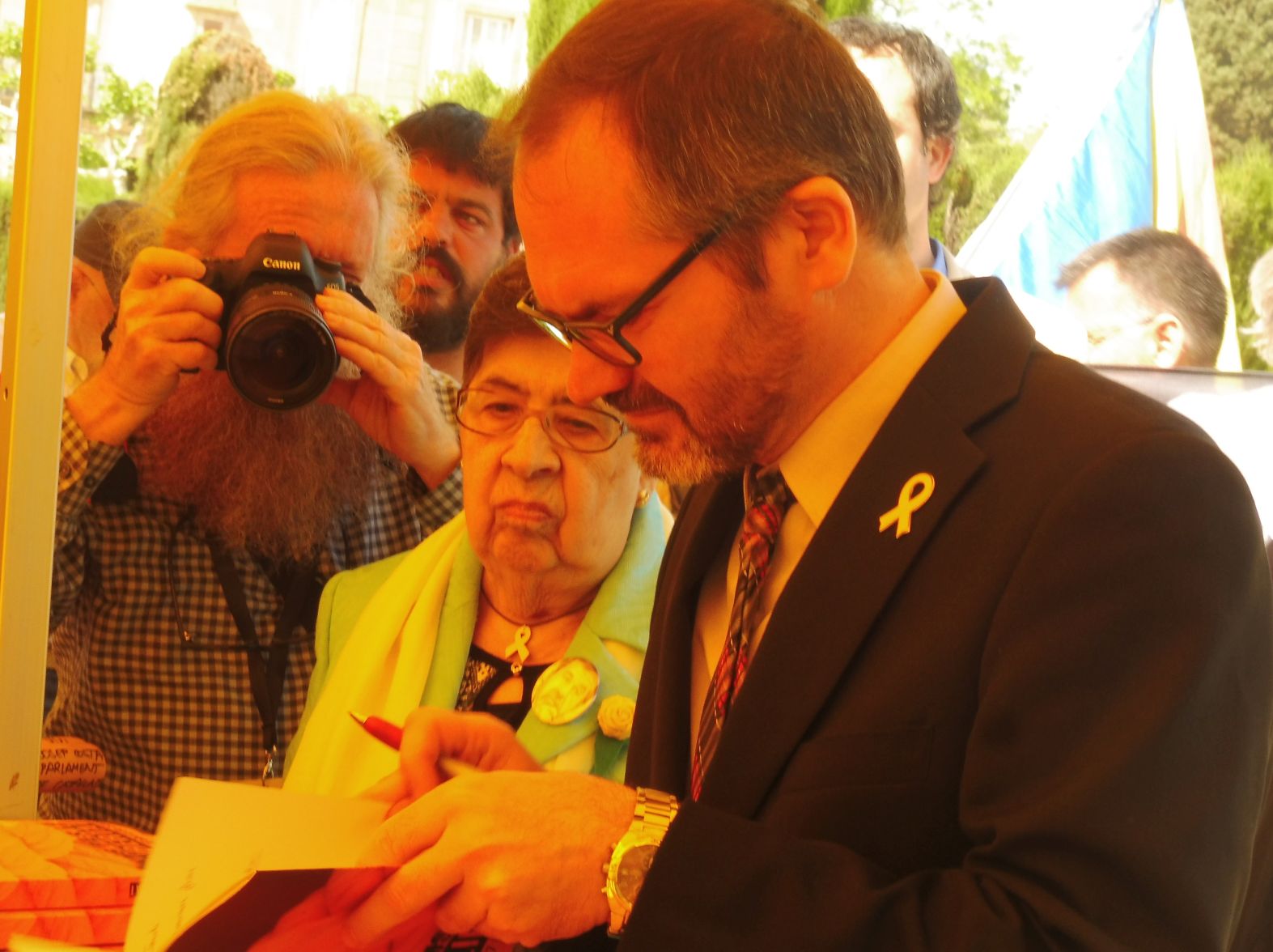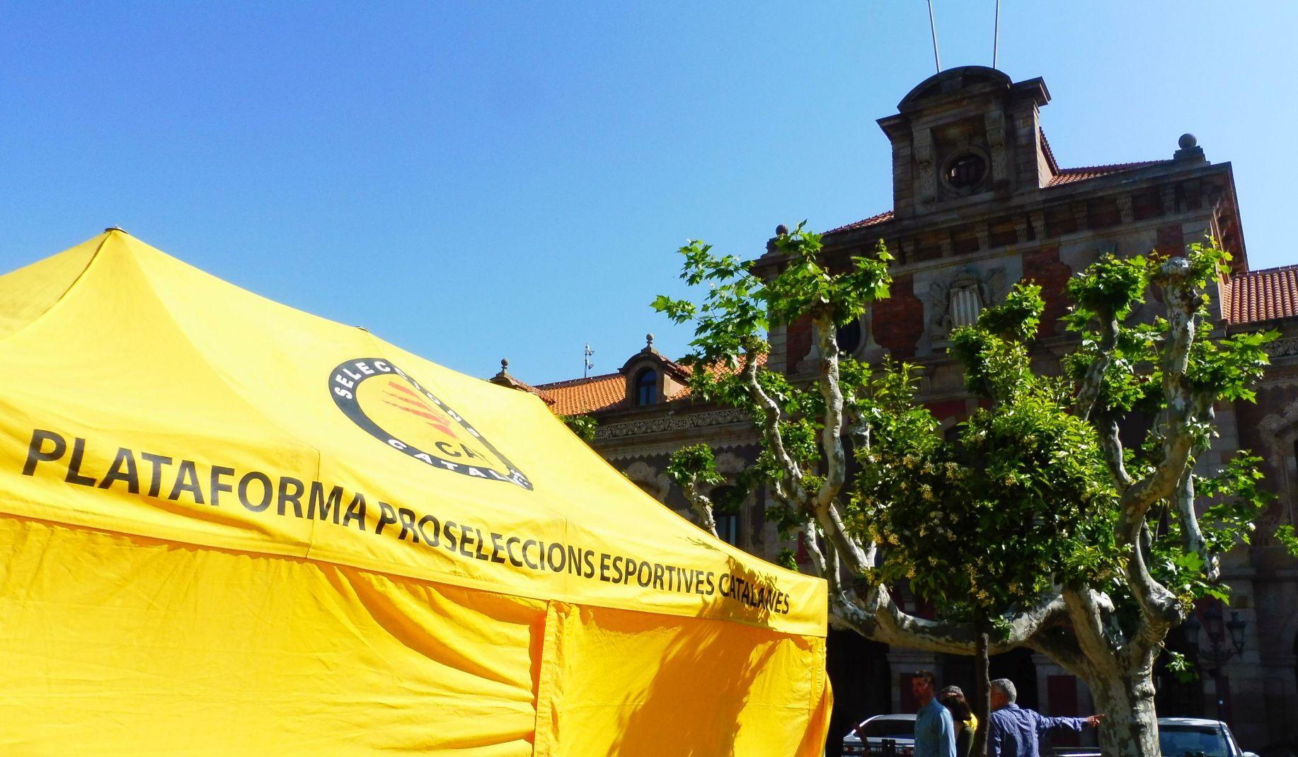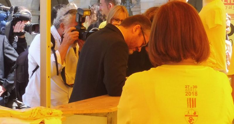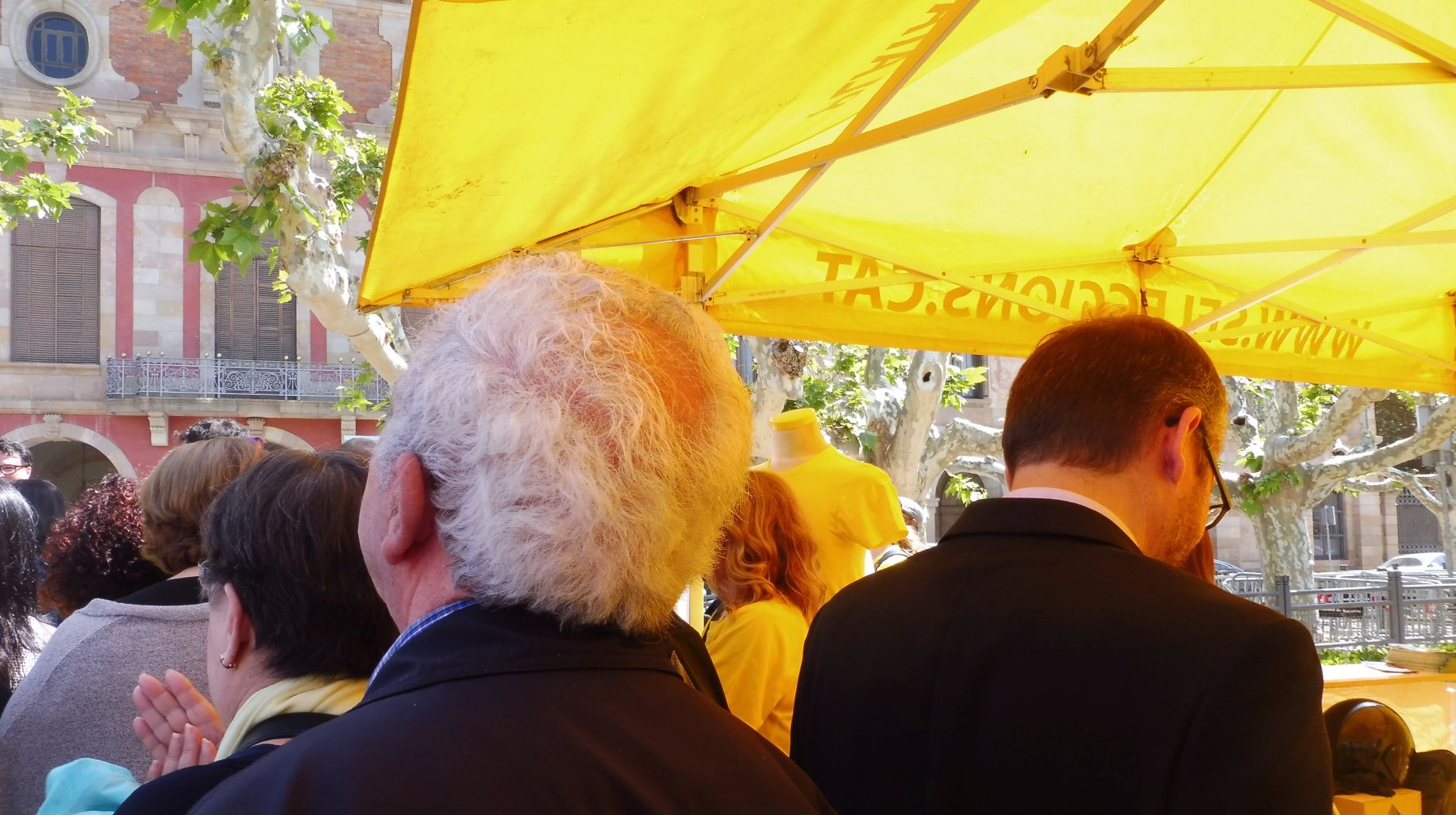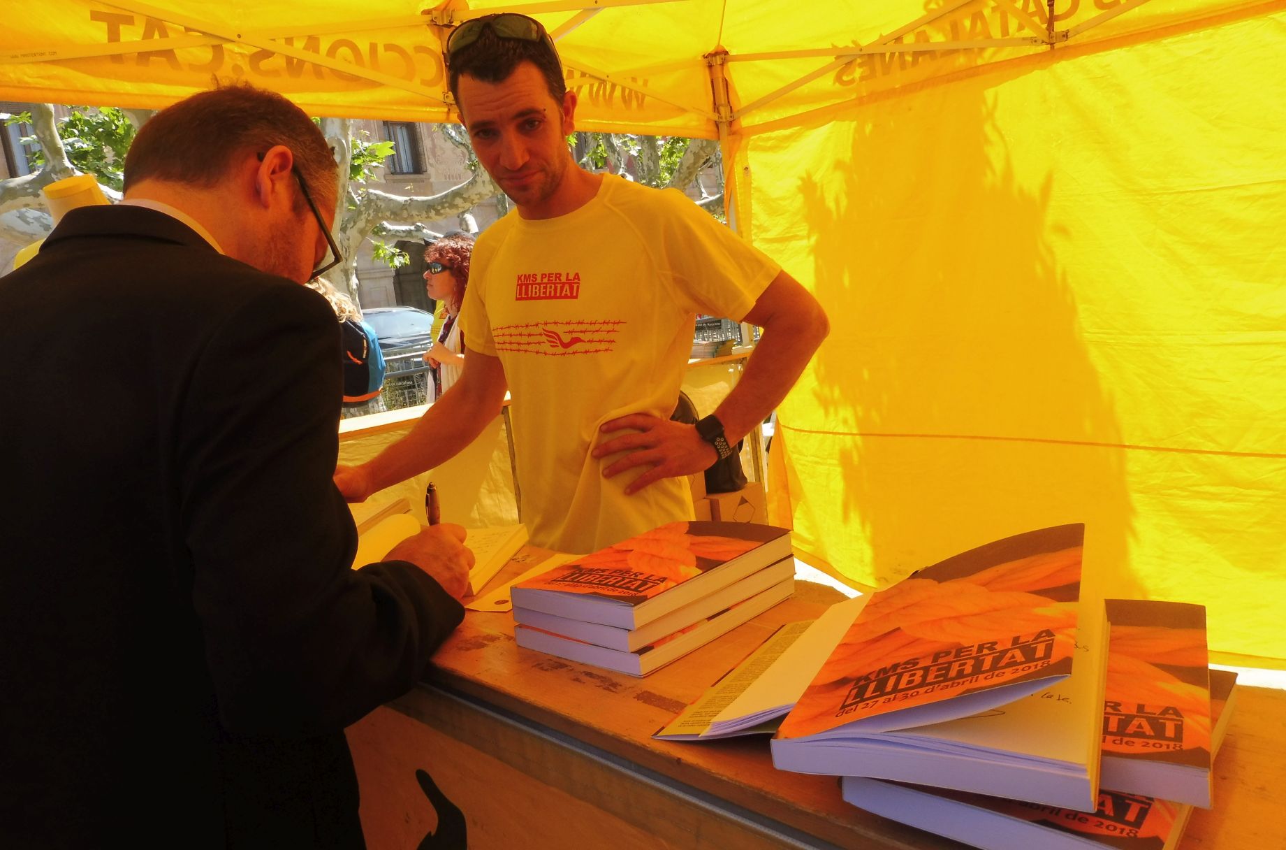 Aquesta tenda era el punt d’acollida on els i les participants recollien les samarretes, on guardaven els llibres que arribarien als presos i preses polítiques i on es rebia les autoritats.
