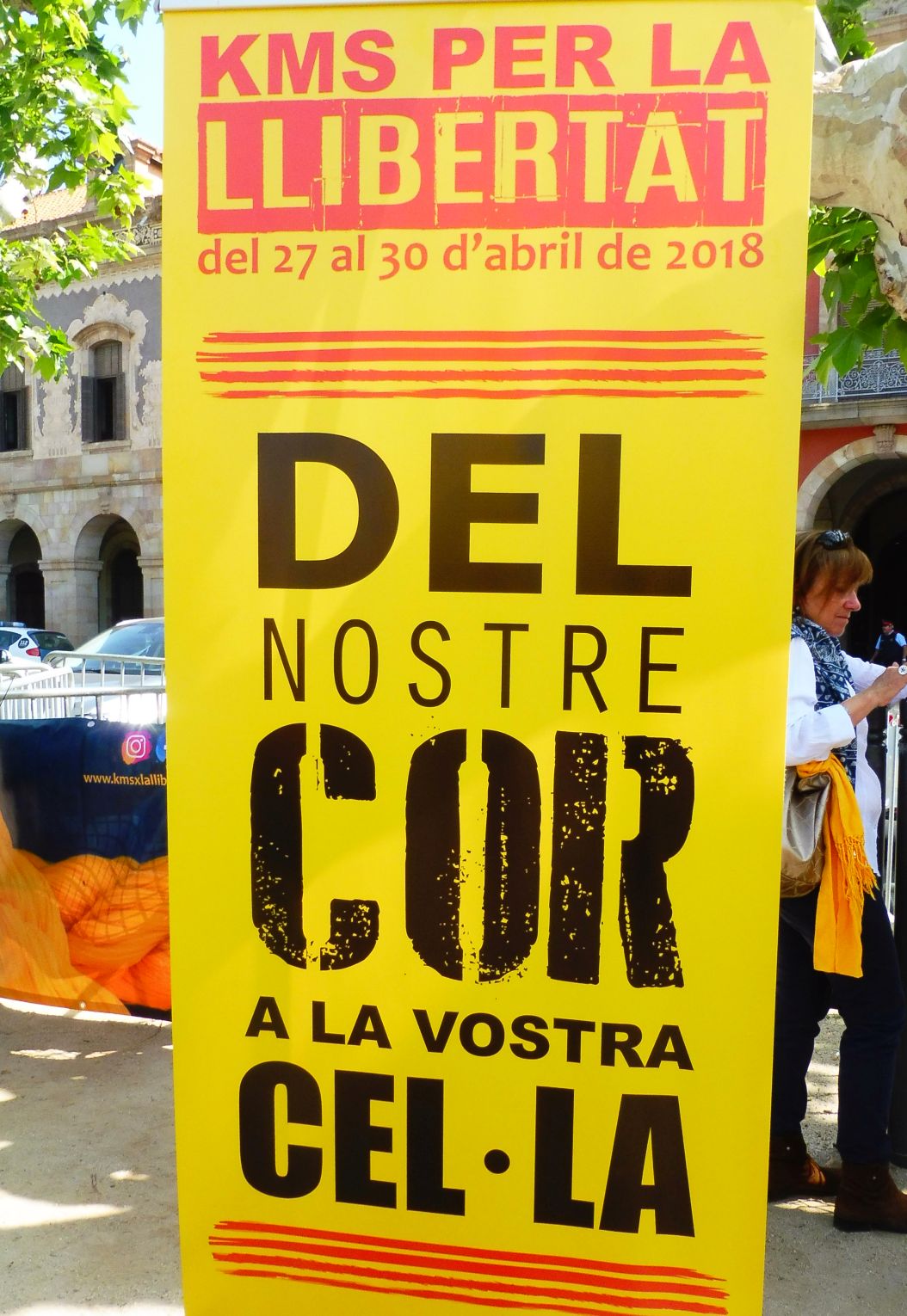 KMS PER LA LLIBERTAT és un important repte esportiu; solidari, paritari i reivindicatiu. Consisteix en recórrer a peu, rellevant-nos cada 10 quilòmetres, una distància lleugerament superior a 700 quilòmetres que pretén arribar fins als centres penitenciaris on es troben reclusos els nostres presos polítics.