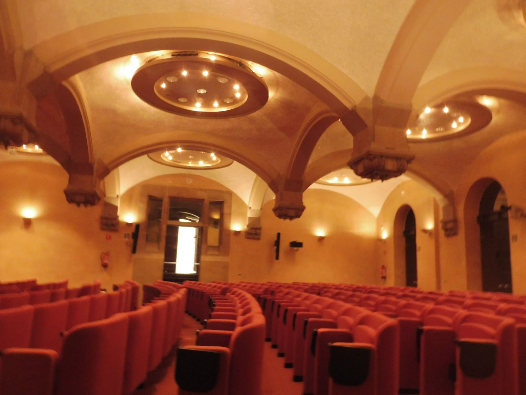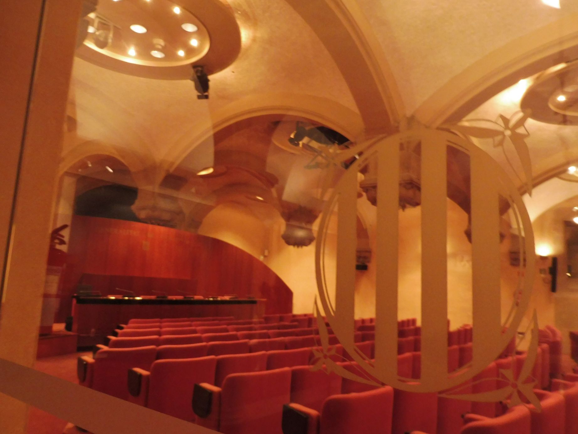 Dues imatges de l’Auditori o sala de conferències que té una capacitat per 200 persones.