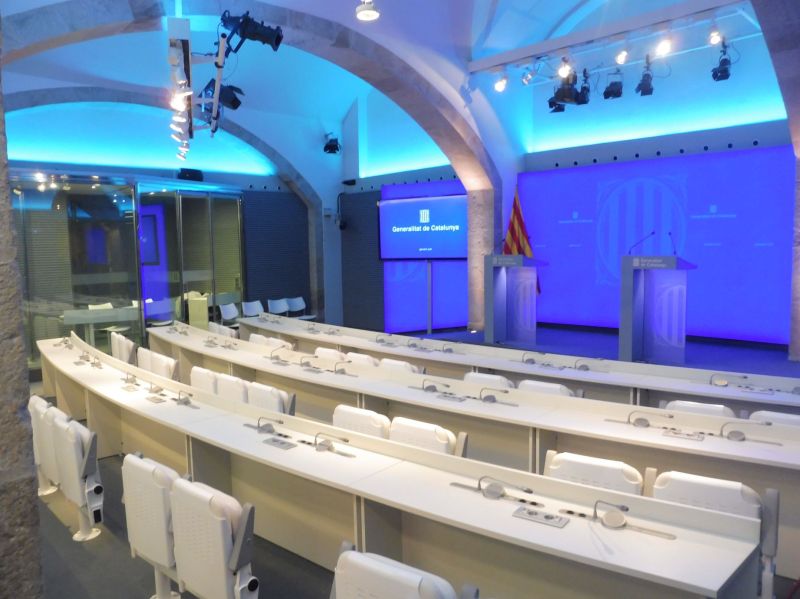 Sala de Premsa. Aquí s’atén la premsa i els mitjans audiovisuals i se’ls transmeten les comunicacions oficials més importants.