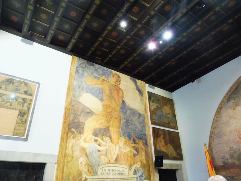 La Sala Torres Garcia acull les pintures al fresc noucentista, que l’artista uruguainocatalà va pintar al Saló Sant Jordi a principis del segle XX per encàrrec d’Enric Prat de la Riba, president de la Mancomunitat de Catalunya.