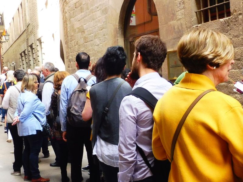 En el tram final, ja es veu la porta per la accedirem al Palau. Tot i que la gentada que el volia visitar era molta, el temps d’espera va ser força ràpid.