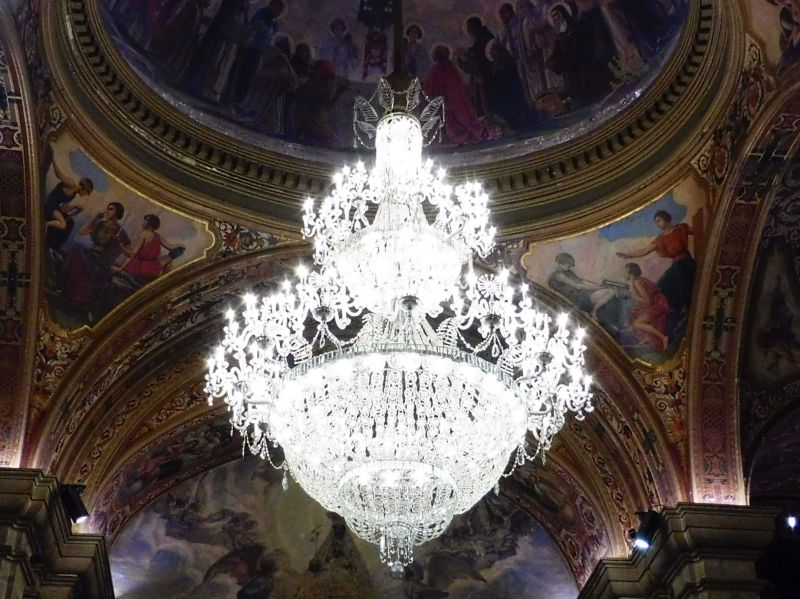 Unes magnífiques làmpades embelleixen el sostre i il·luminen l’estança.