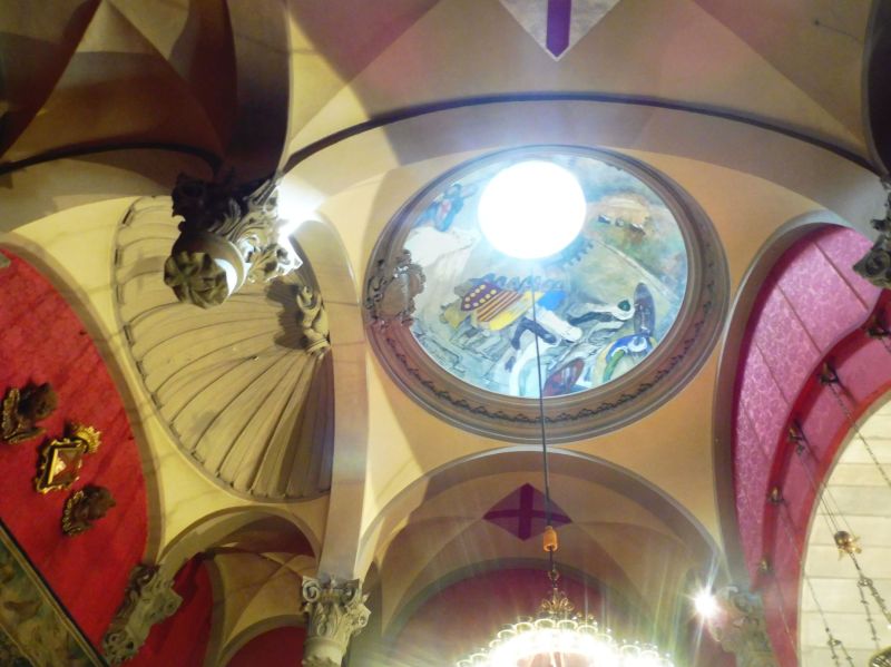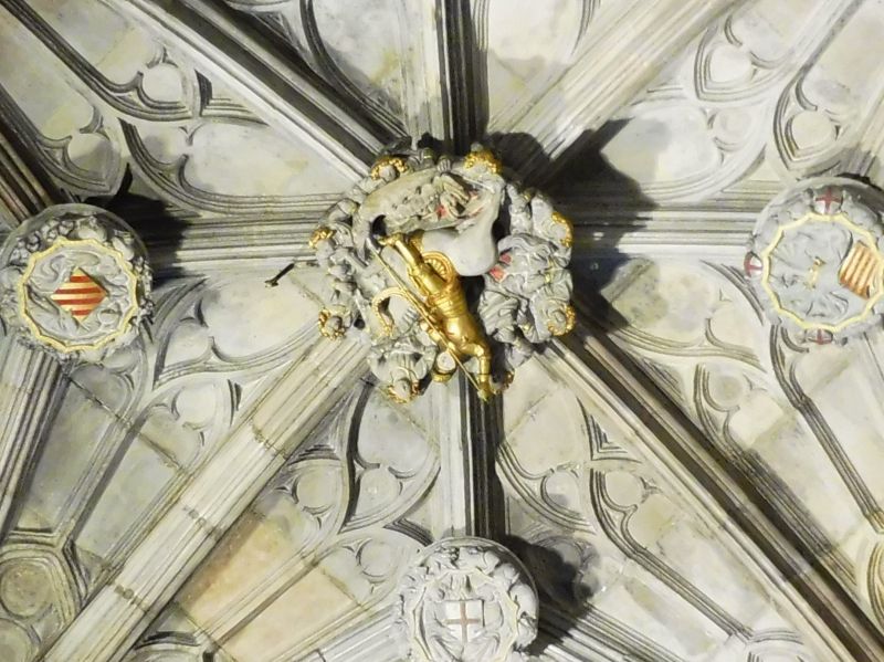 A la galeria gòtica s’hi troben aquests sostres tan ben decorats que fan aixecar la vista enlaire per tal d’admirar-los.